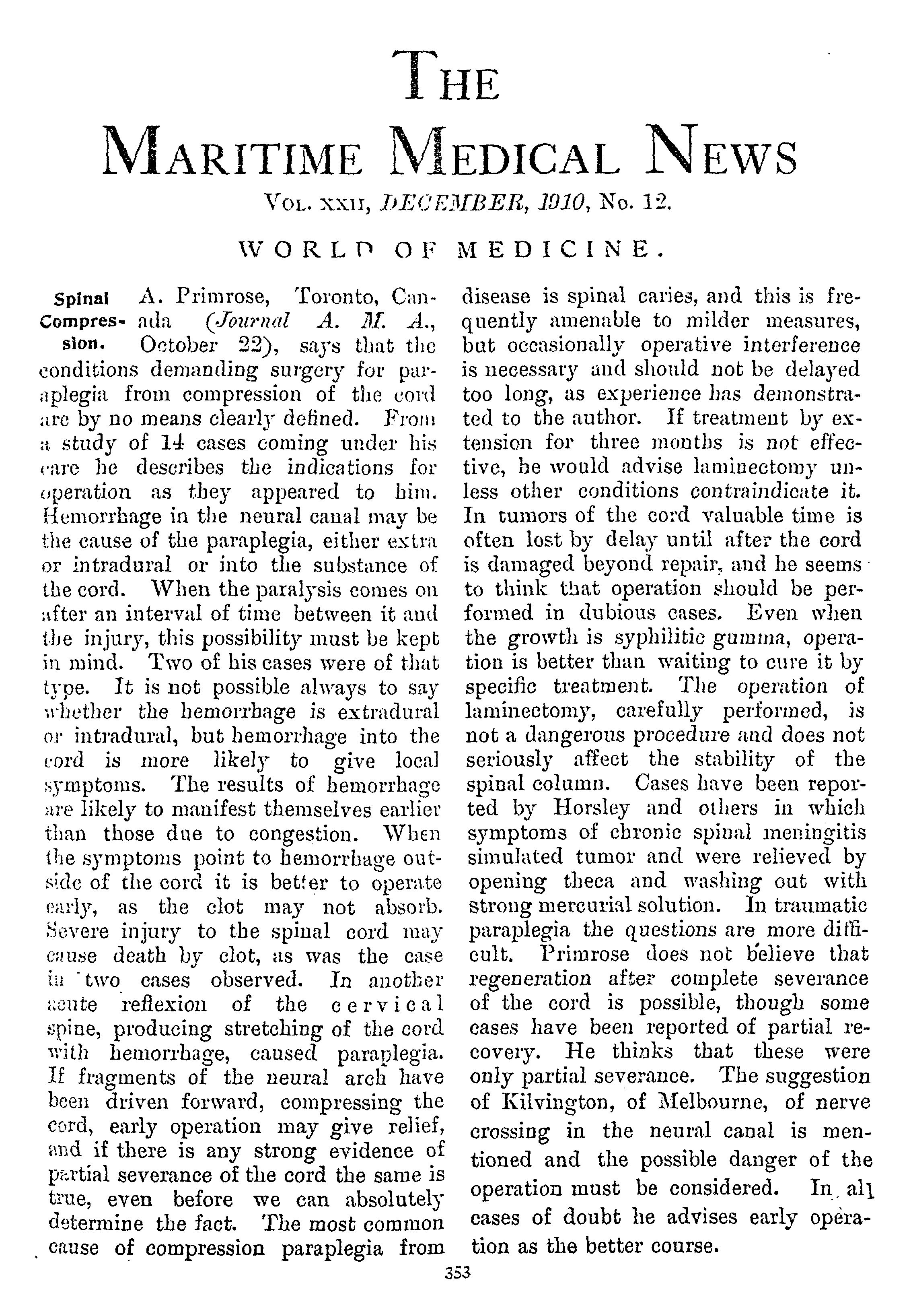 The Maritime medical news : [Vol. 22, no. 12 (Dec. 1910)]
