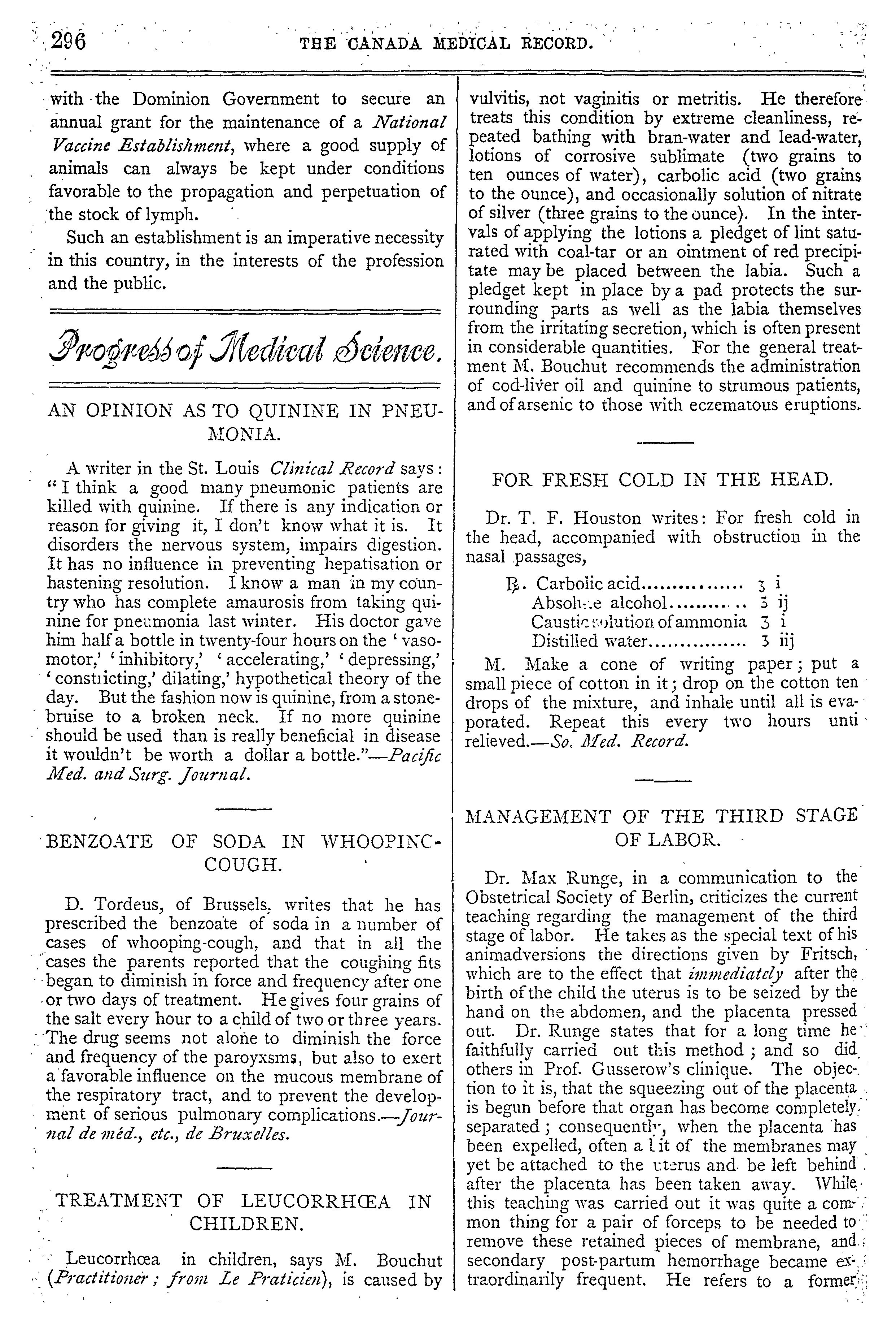 The Canada medical record [Vol. 9, no. 12 (Sept. 1881)]