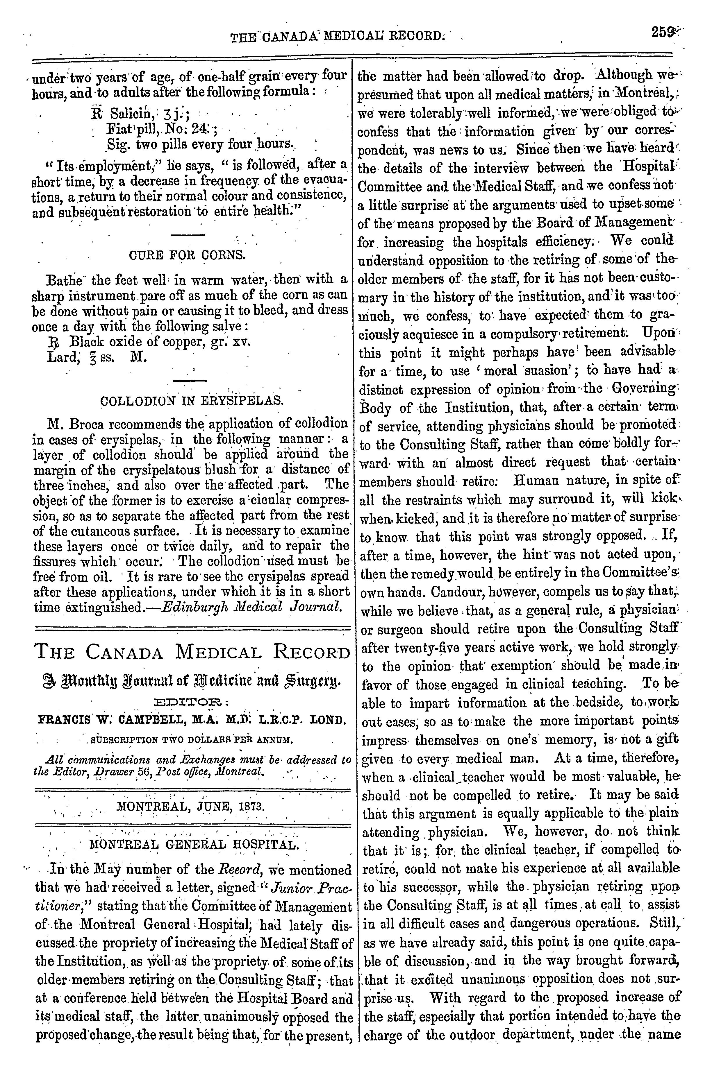 The Canada medical record : [Vol. 1, no. 11] (June 1873)]