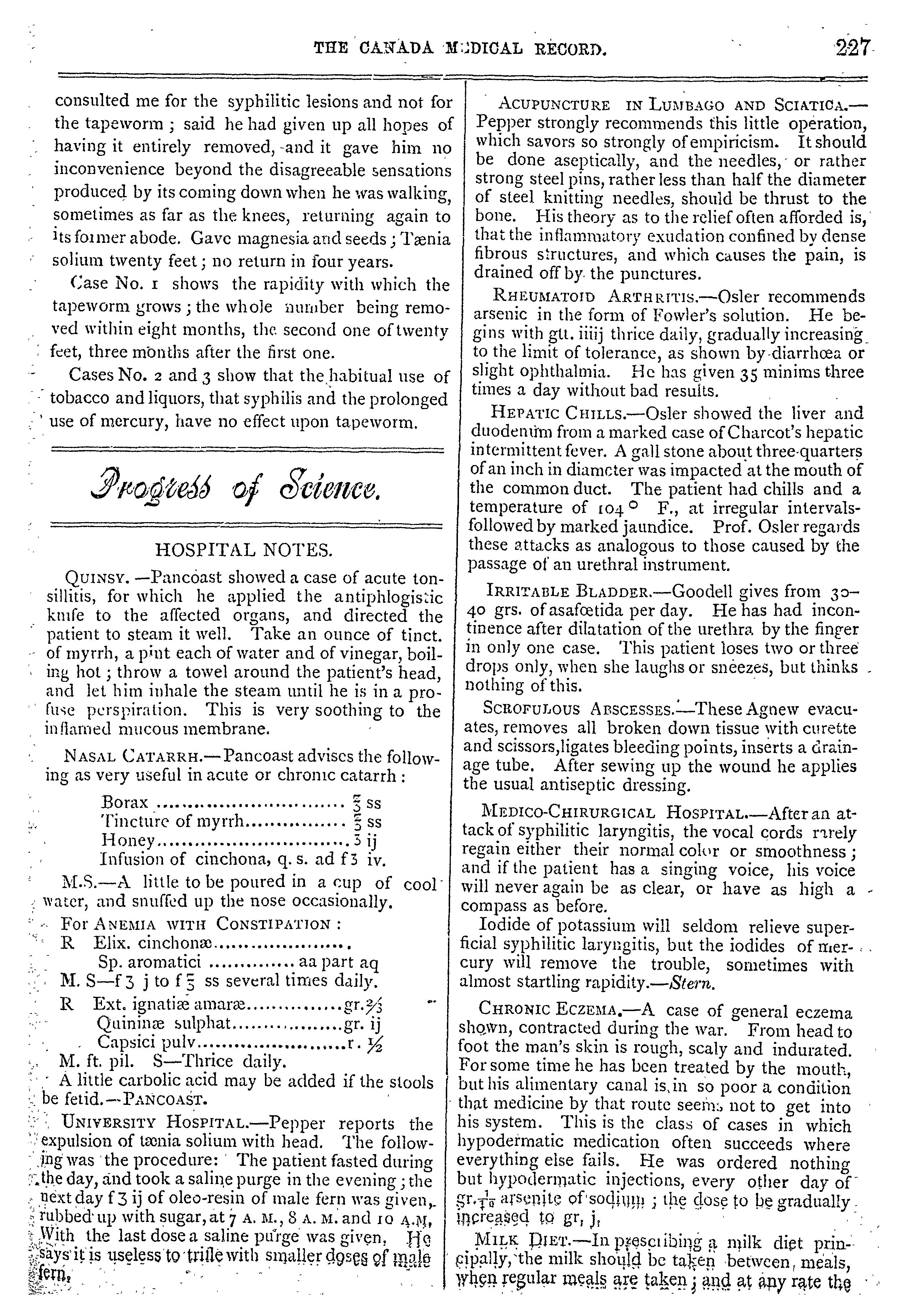 The Canada medical record : [Vol. 16, no. 10 (July 1888)]