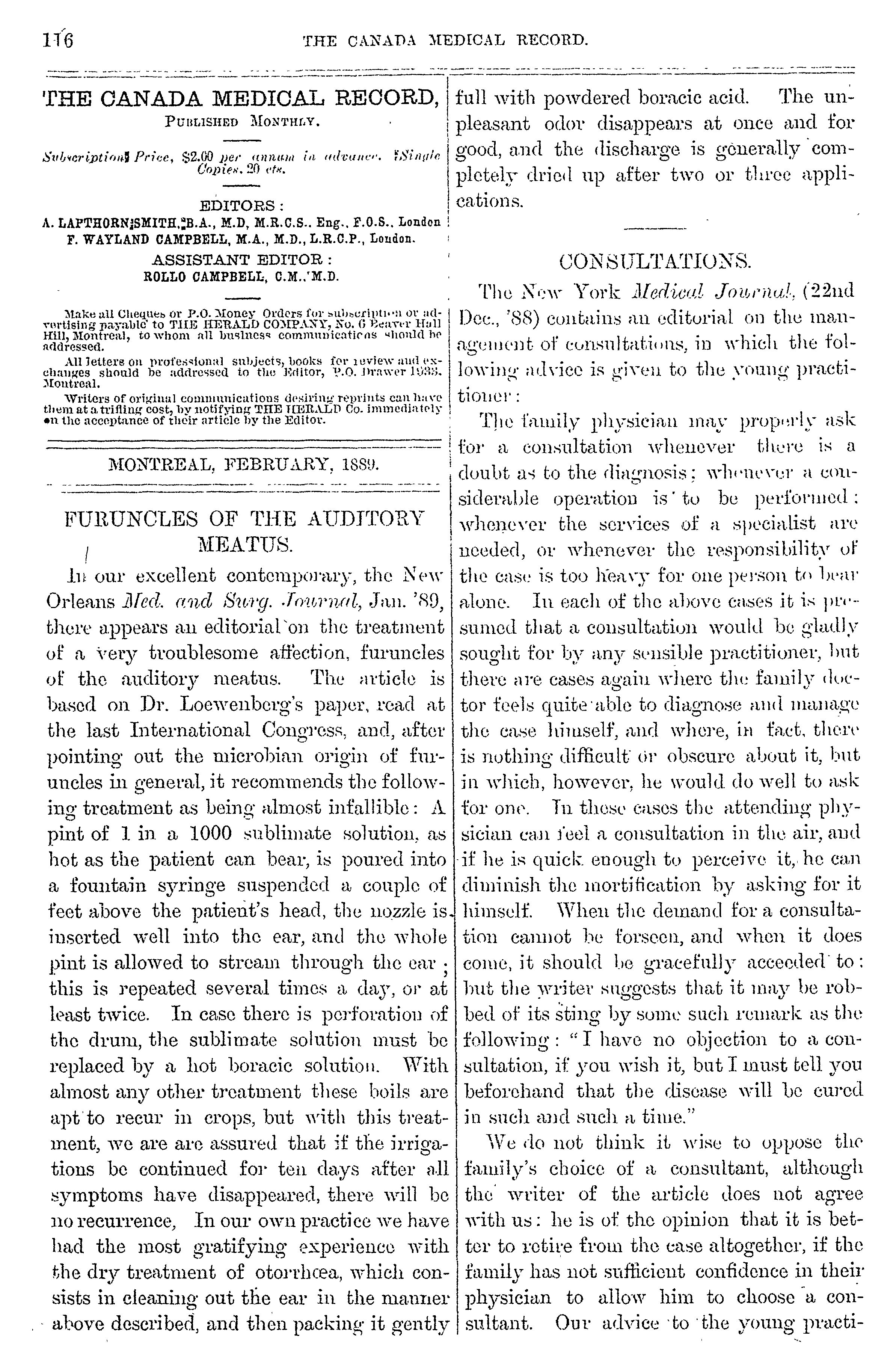 The Canada medical record : [Vol. 17, no. 5 (Feb. 1889)]