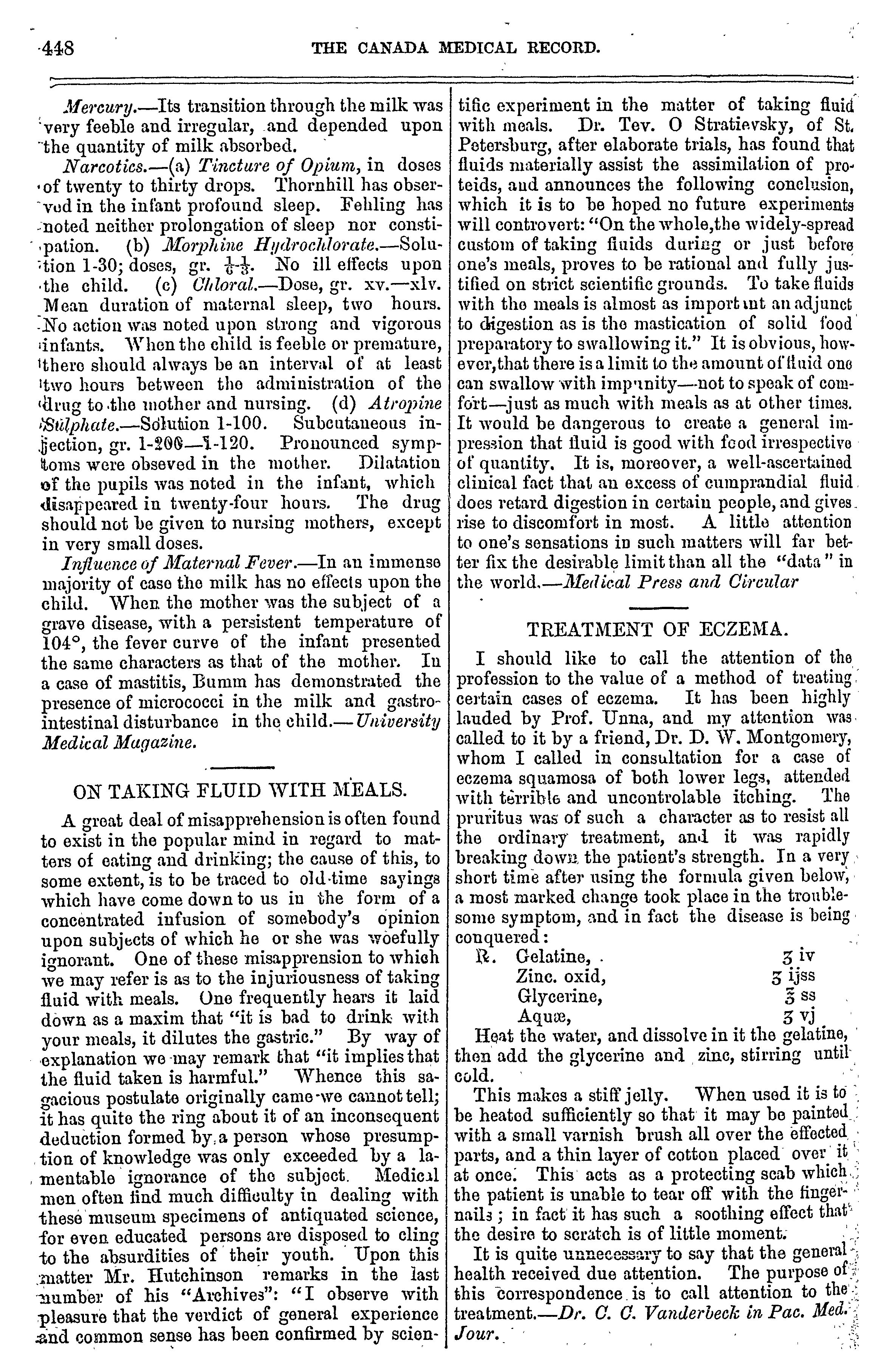 The Canada medical record [Vol. 20, no. 7 (Apr. 1892)]