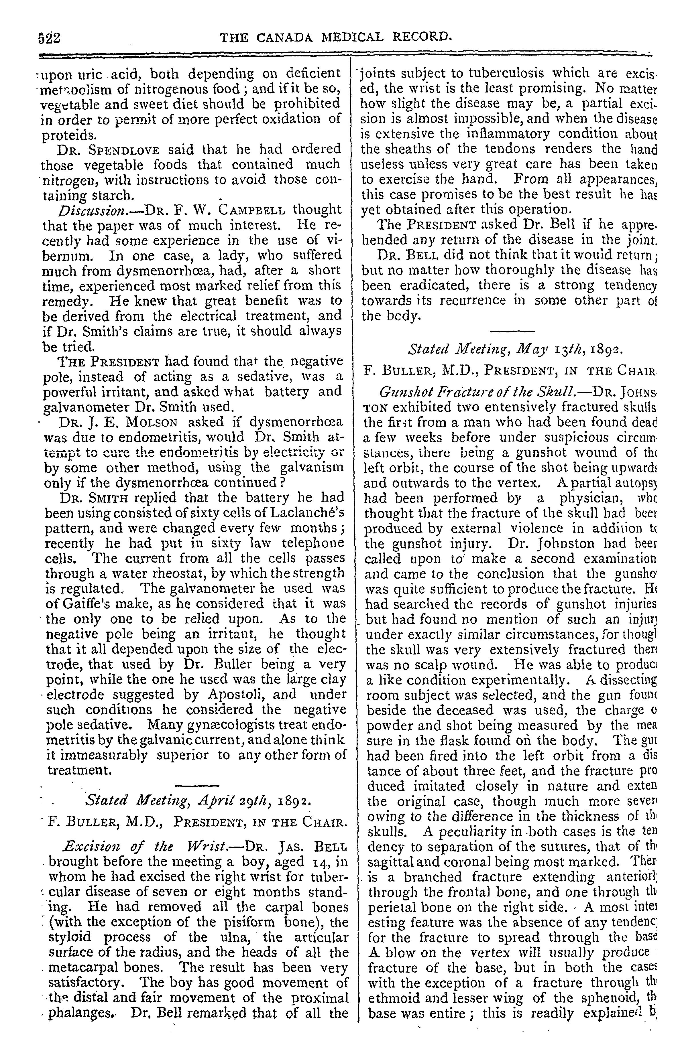 The Canada medical record : [Vol. 20, no. 10 (July 1892)]