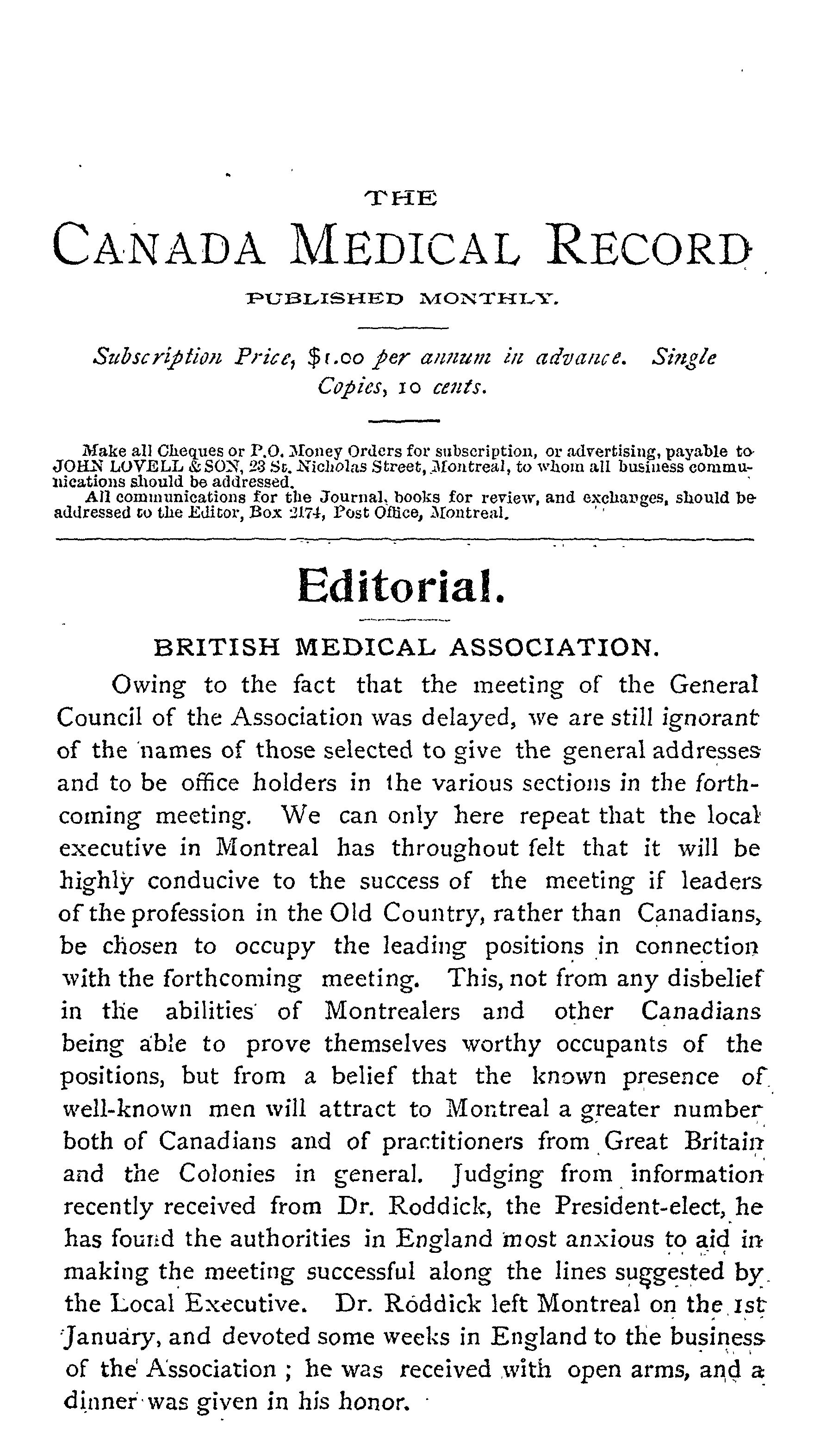 The Canada medical record : [Vol. 25, no. 5] (Feb. 1897)]