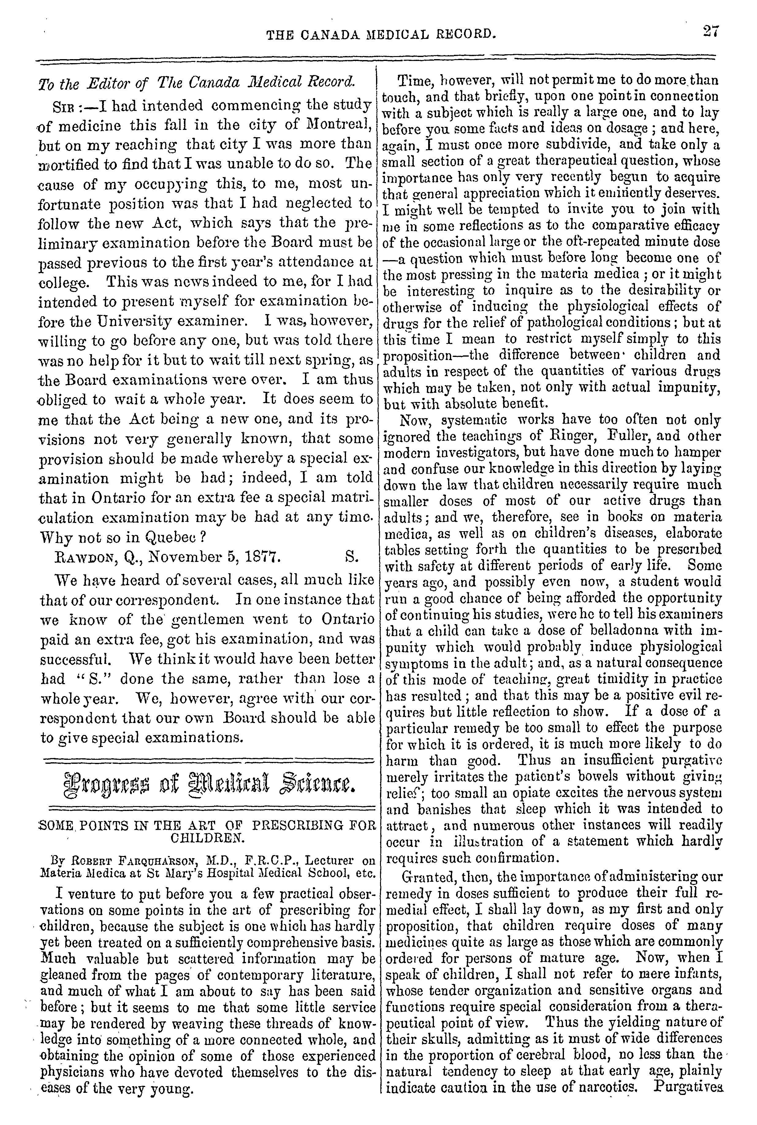 The Canada medical record : [Vol. 6, no. 2] (Nov. 1877)]