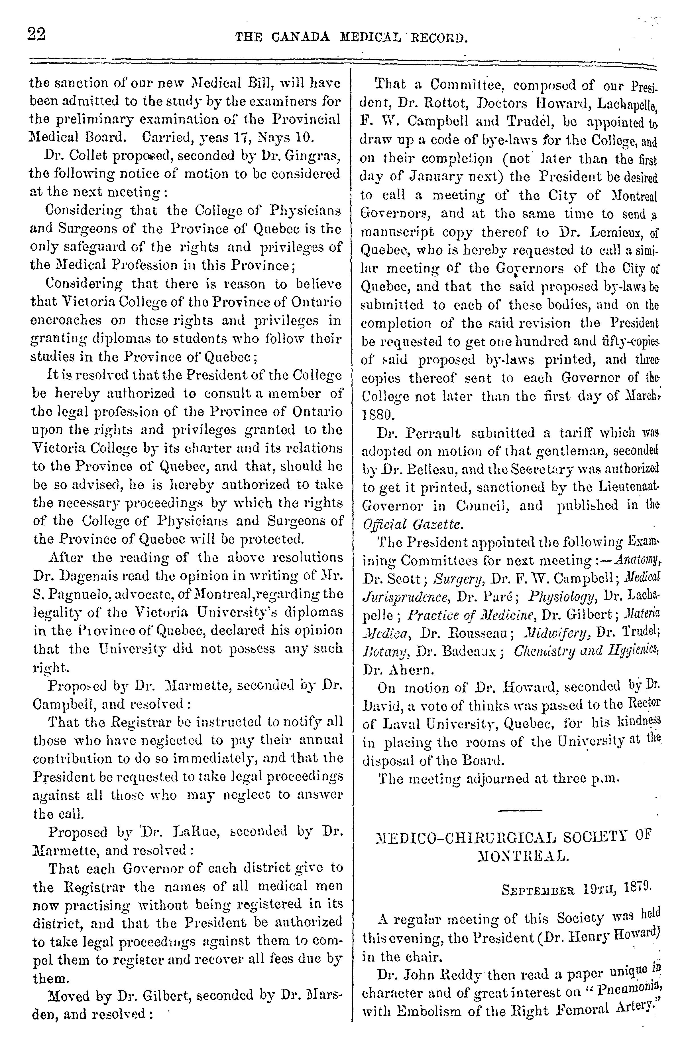 The Canada medical record : [Vol. 8, no. 1 (Oct. 1879)]