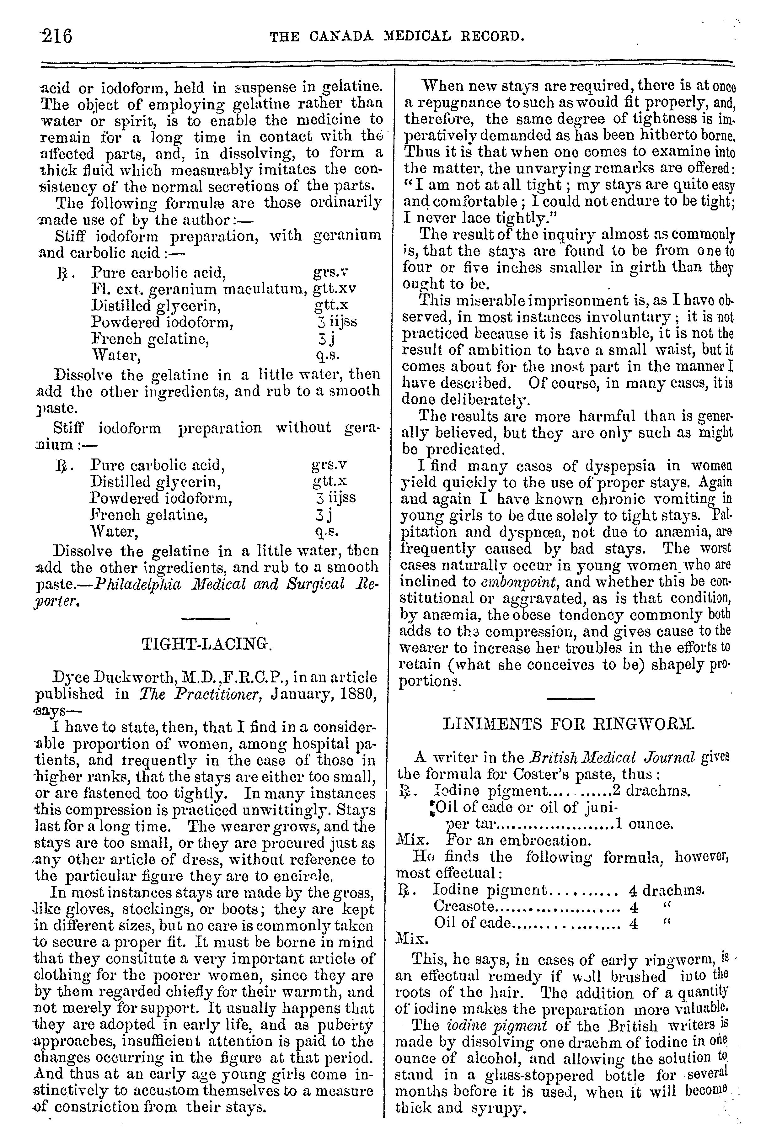 The Canada medical record : [Vol. 8, no. 8 (May 1880)]