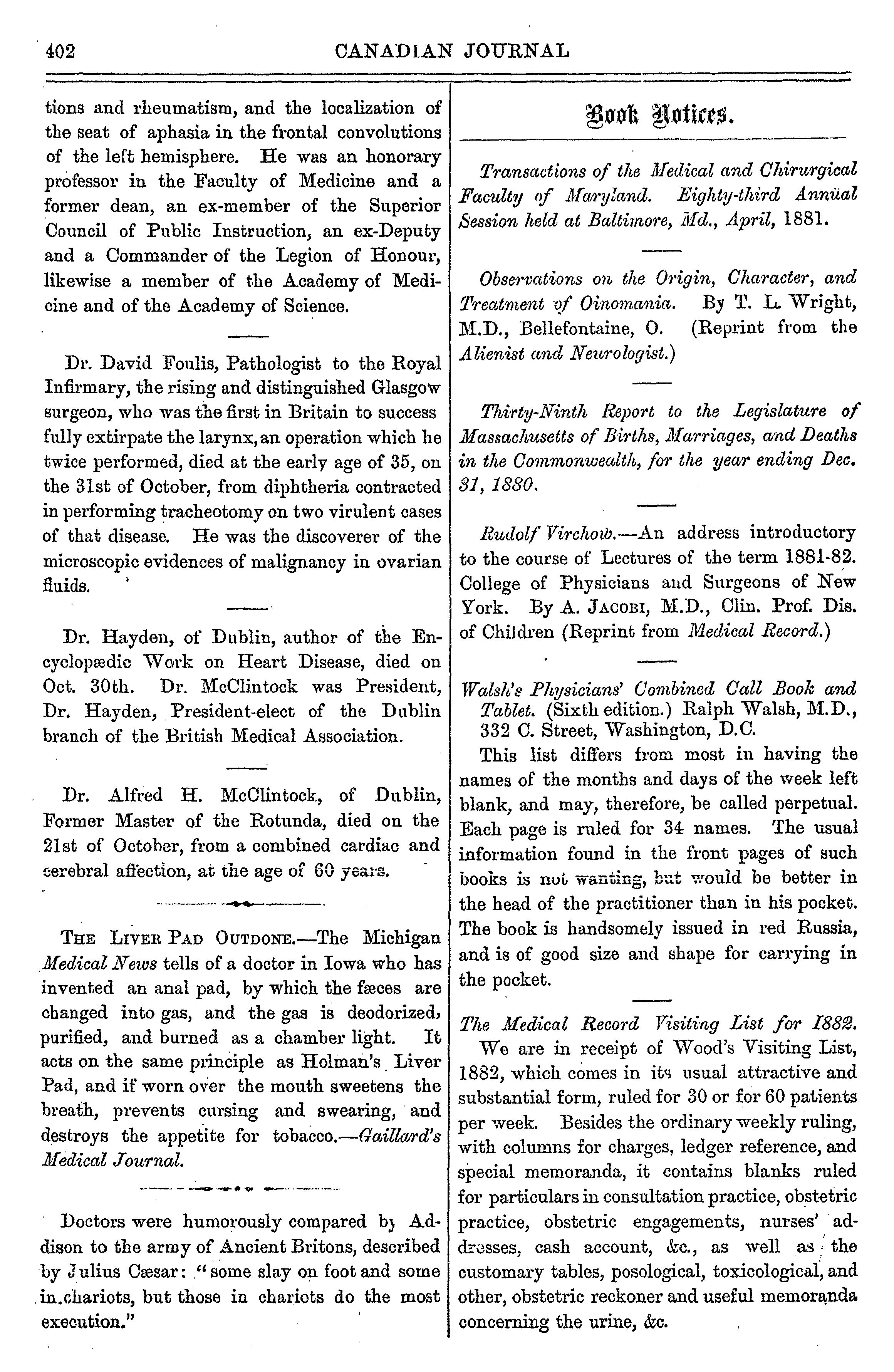 The Canadian journal of medical science [Vol. 6, no. 12] (Dec. 1881)]