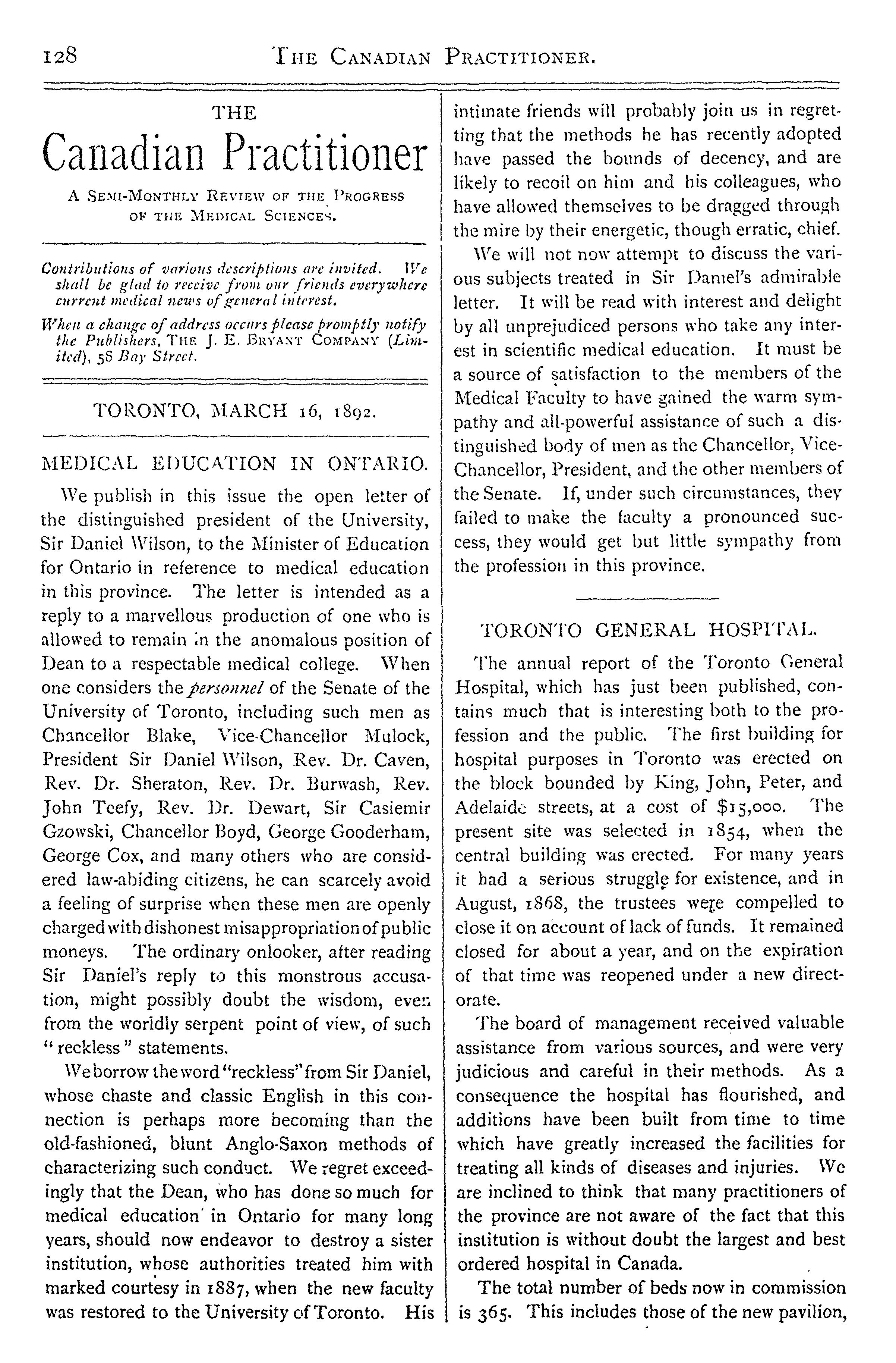 The Canadian practitioner [Vol. 17, no. 6] (Mar. 16, 1892)]