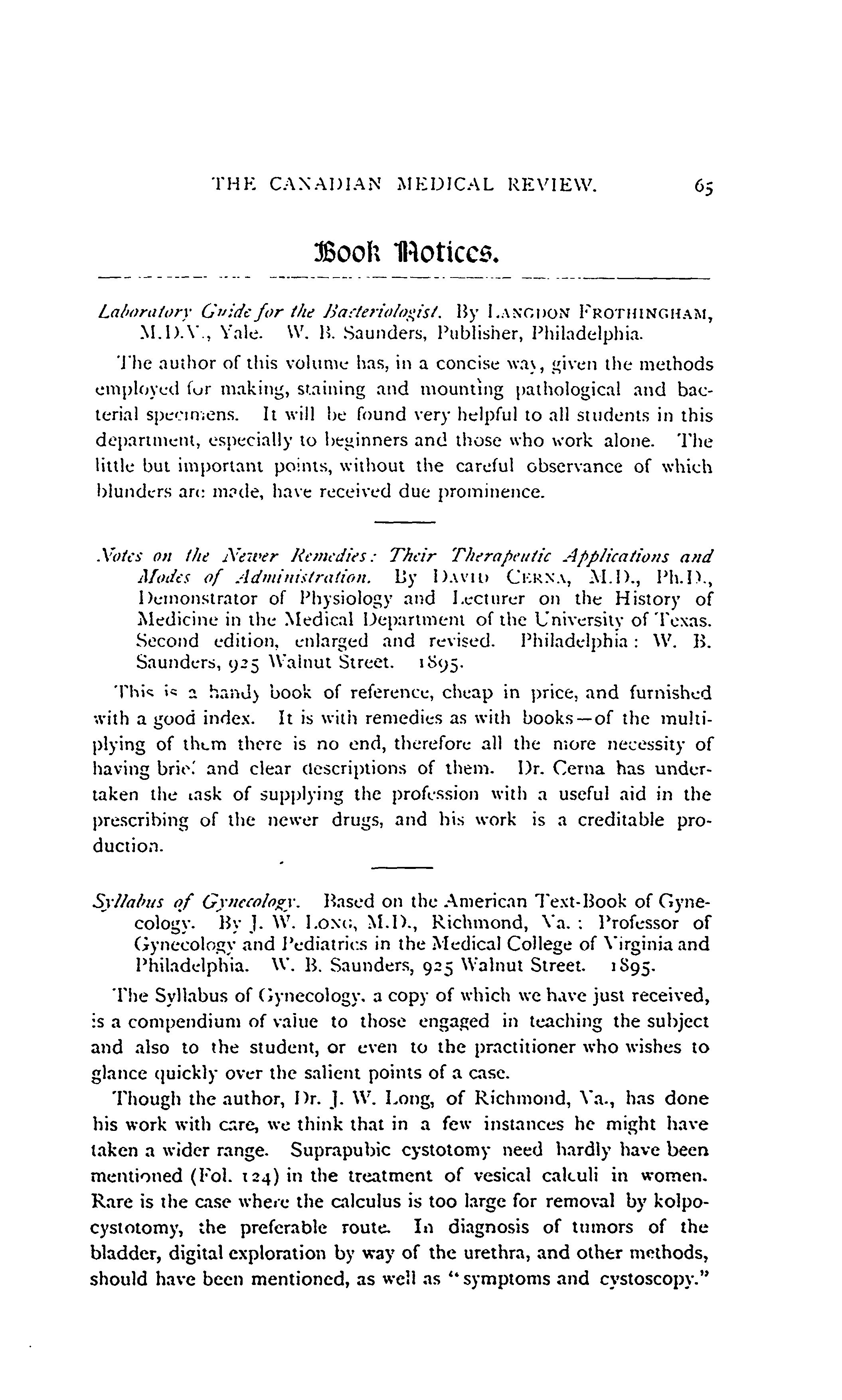 - Toronto : Canadian Medical Review Co., [1895]