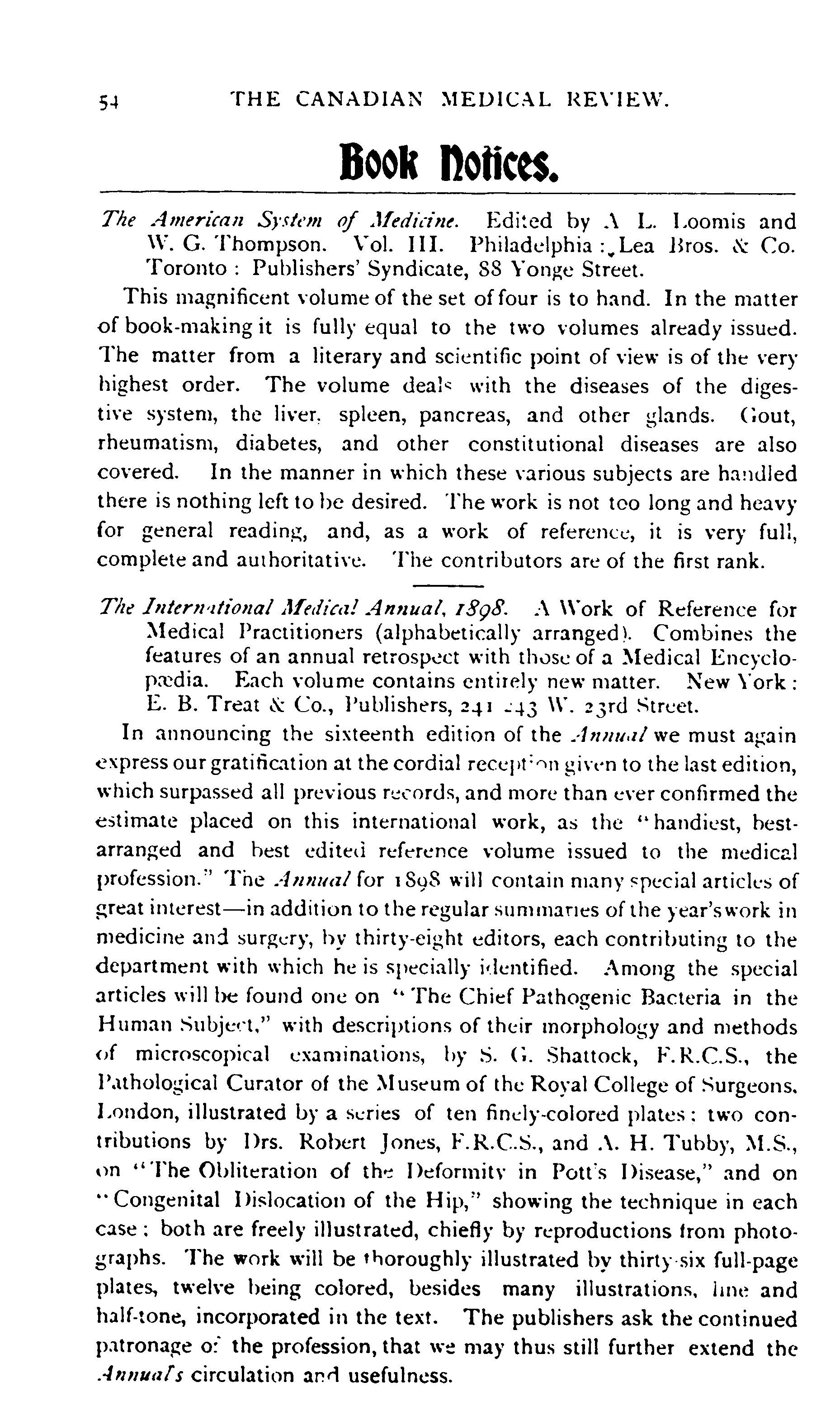 Toronto : [Canadian Medical Review Co., 1898]; 35 images avec recherche en texte intégral