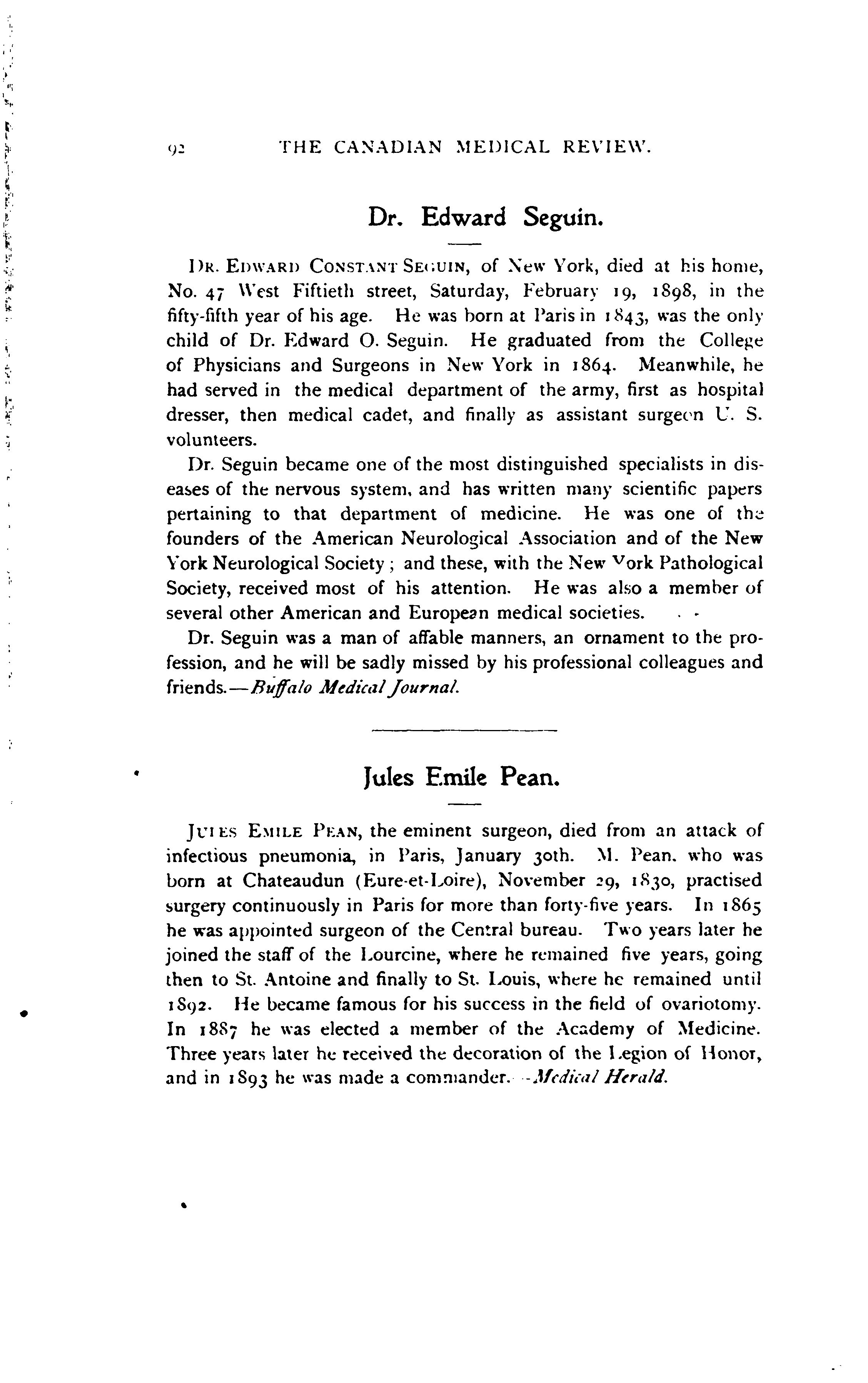 Toronto : [Canadian Medical Review Co., 1898]; 33 images with full-text search