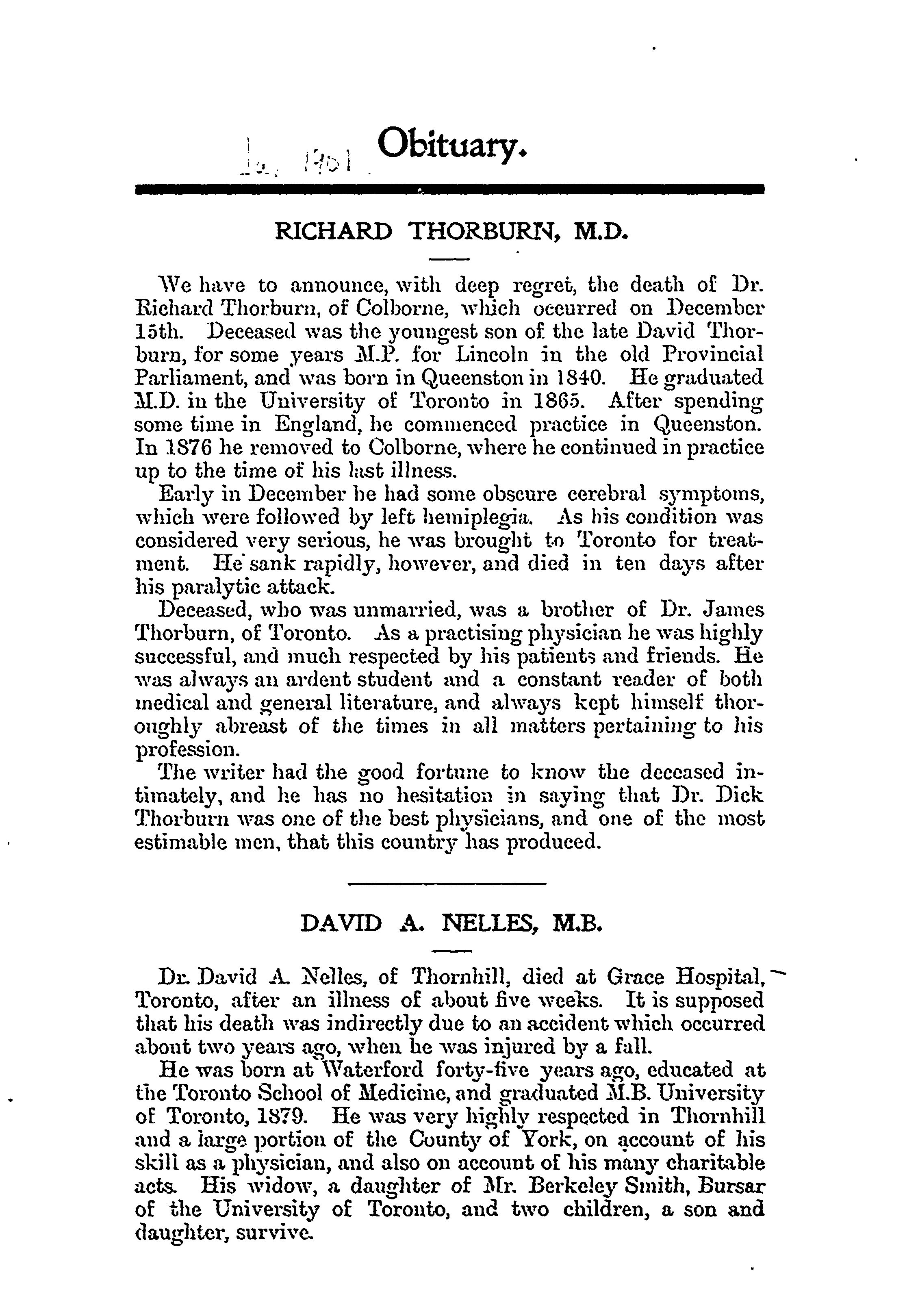 Toronto : Canadian Practitioner and Review Co., [1901]; 69 images avec recherche en texte intégral