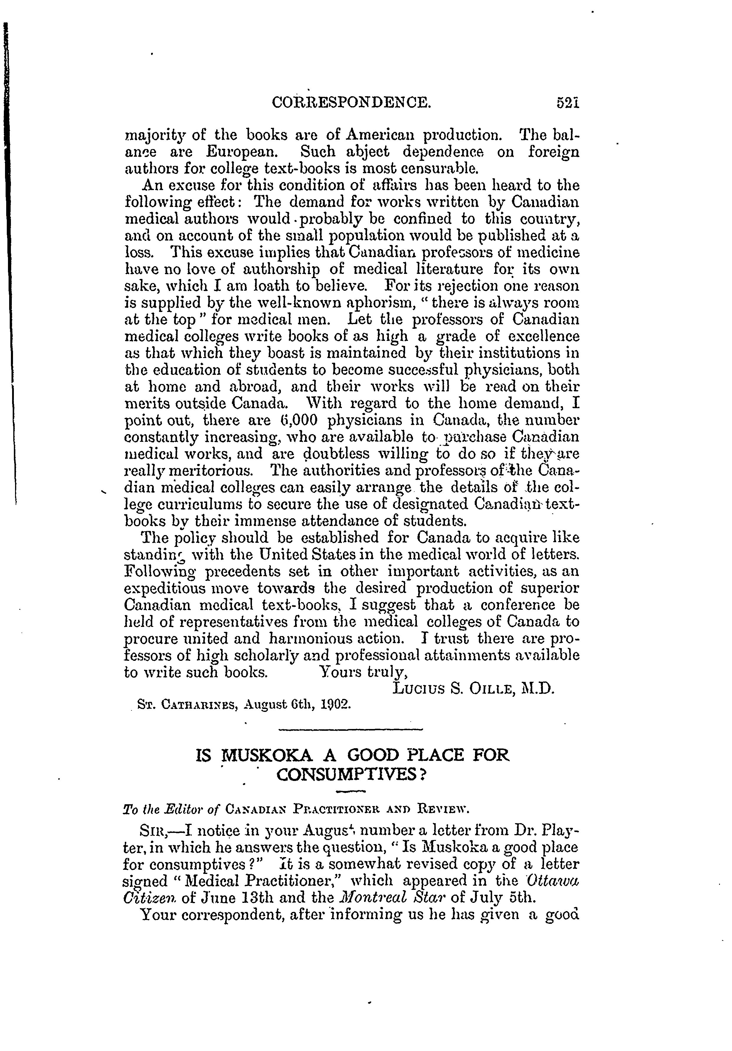 Toronto : [Canadian Practitioner and Review Co., 1902]; 61 images avec recherche en texte intégral