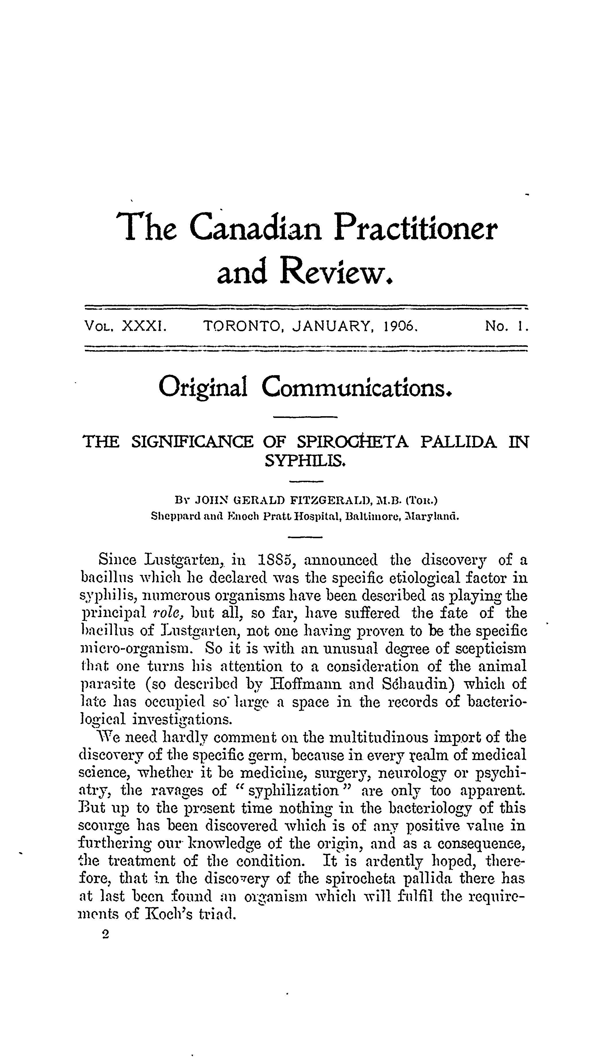 The Canadian practitioner and review : [Vol. 31, no. 1 (Jan. 1906)]