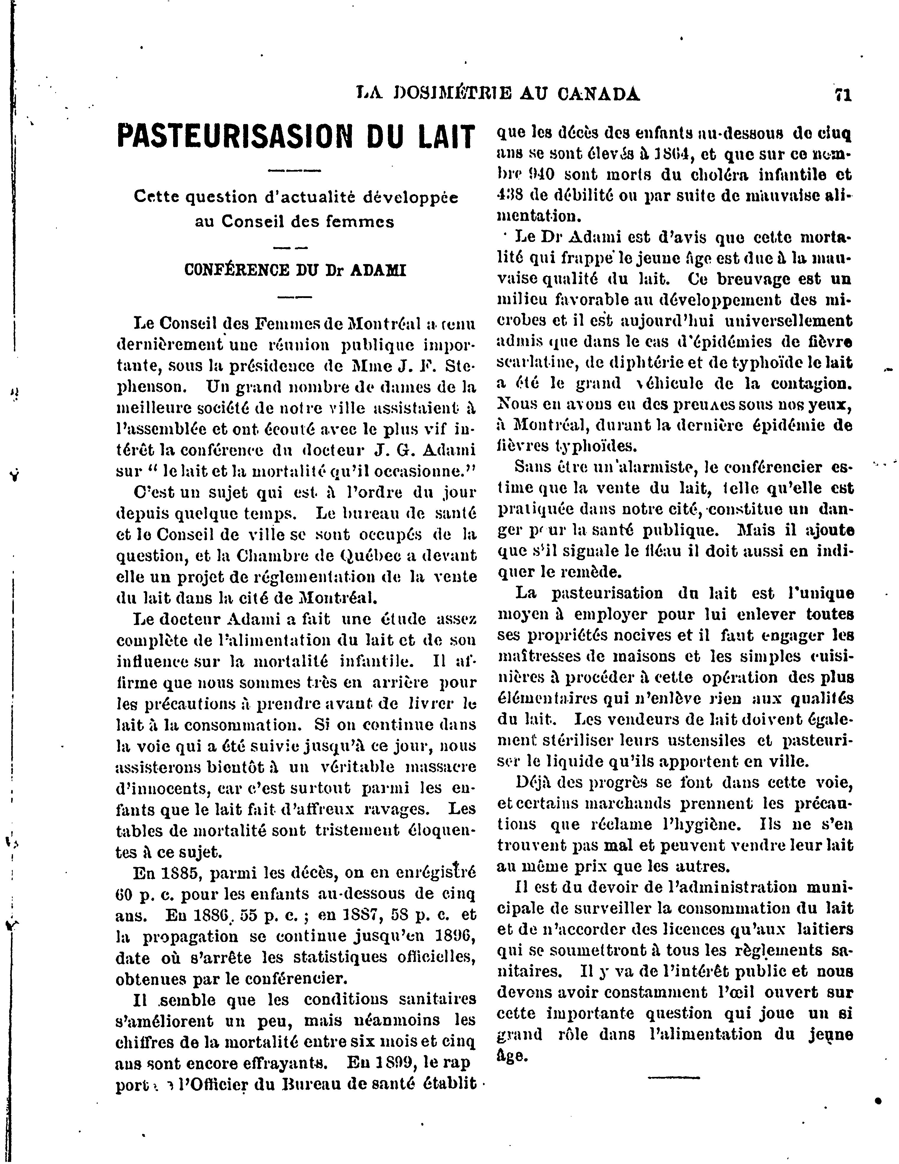La dosimétrie au Canada [2e année, no 5 (nov. 1900)]