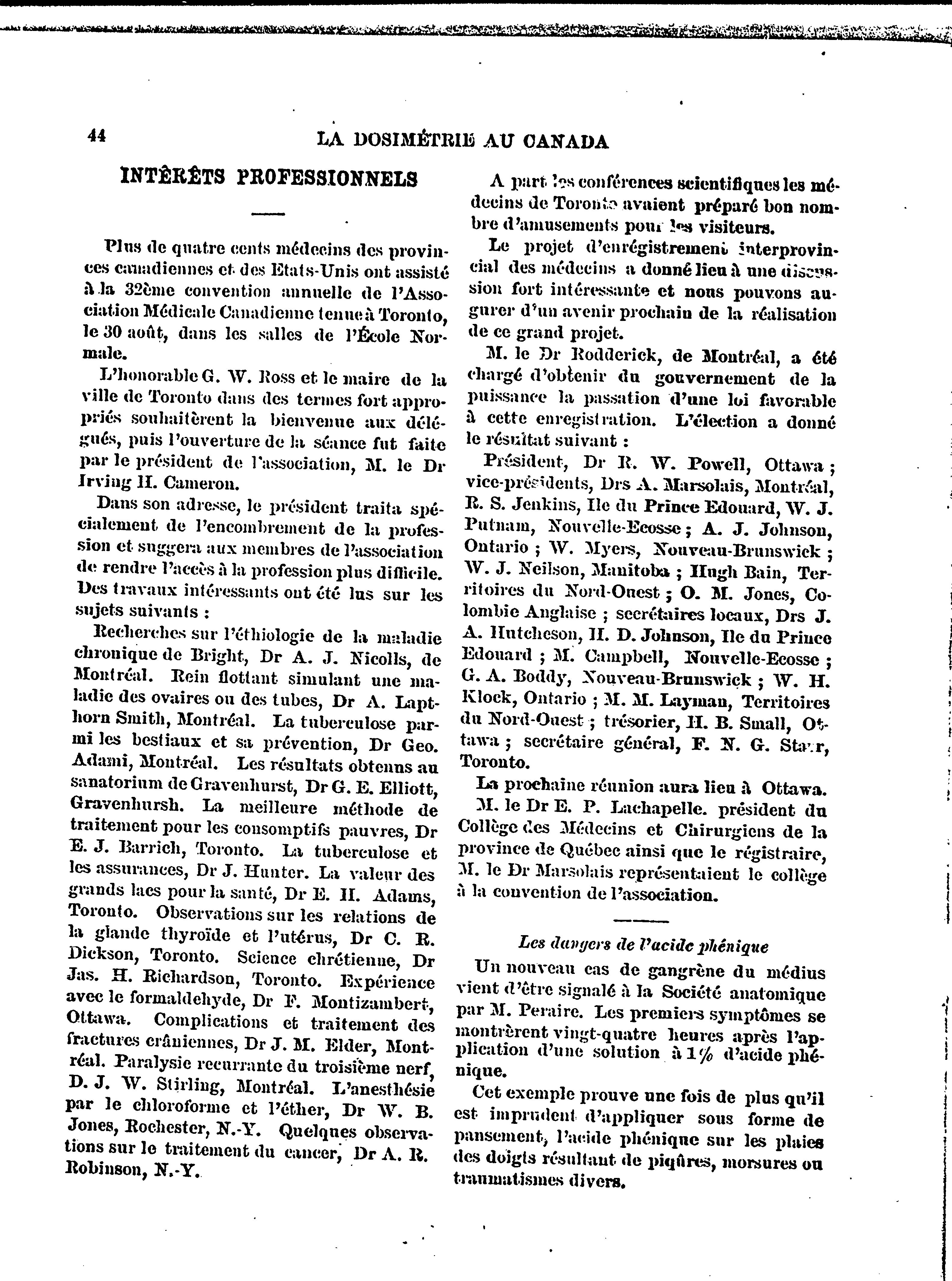 - La dosimétrie au Canada [1ère année, no 3 (sept. 1899)]
