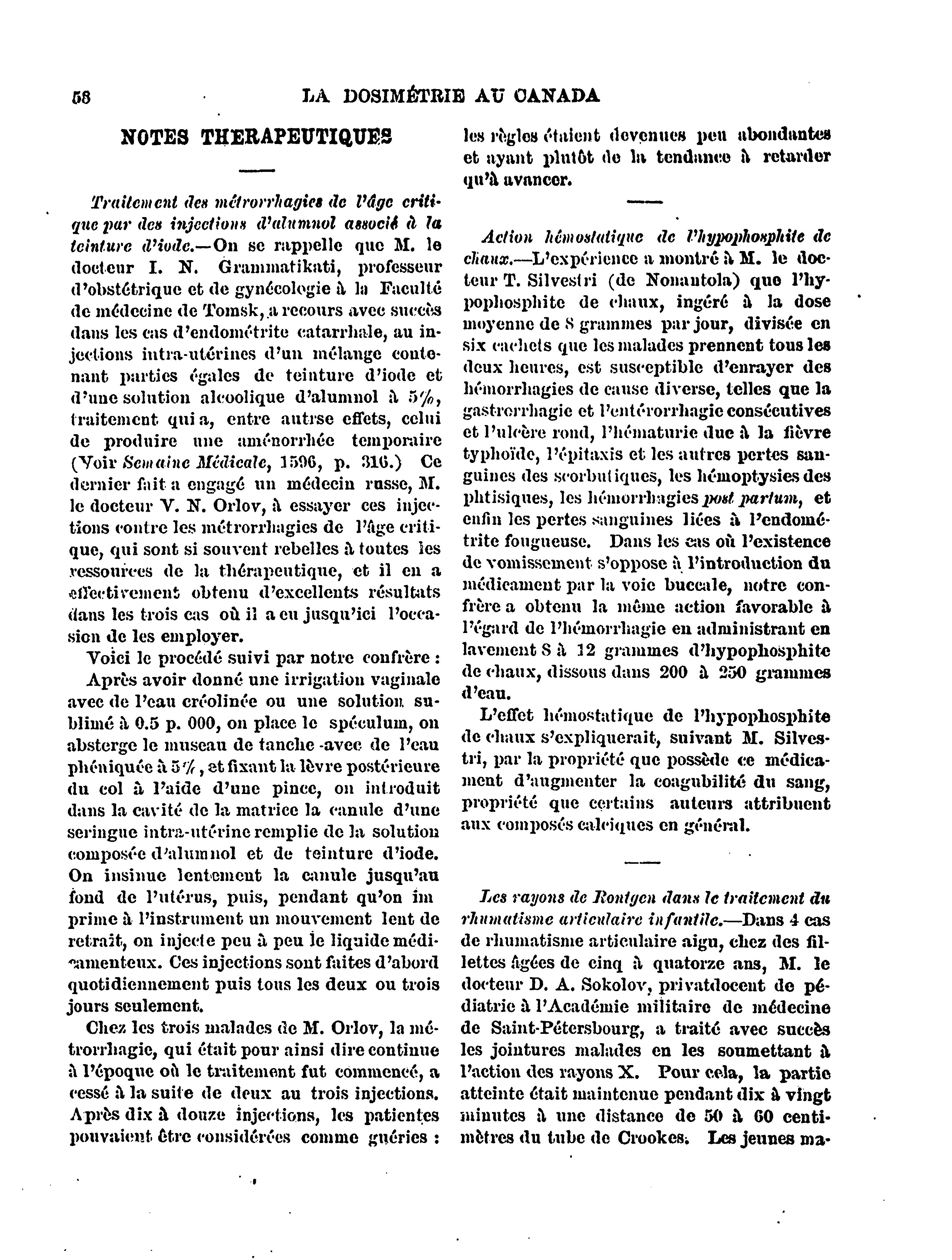 - La dosimétrie au Canada [1ère année, no 4 (oct. 1899)]