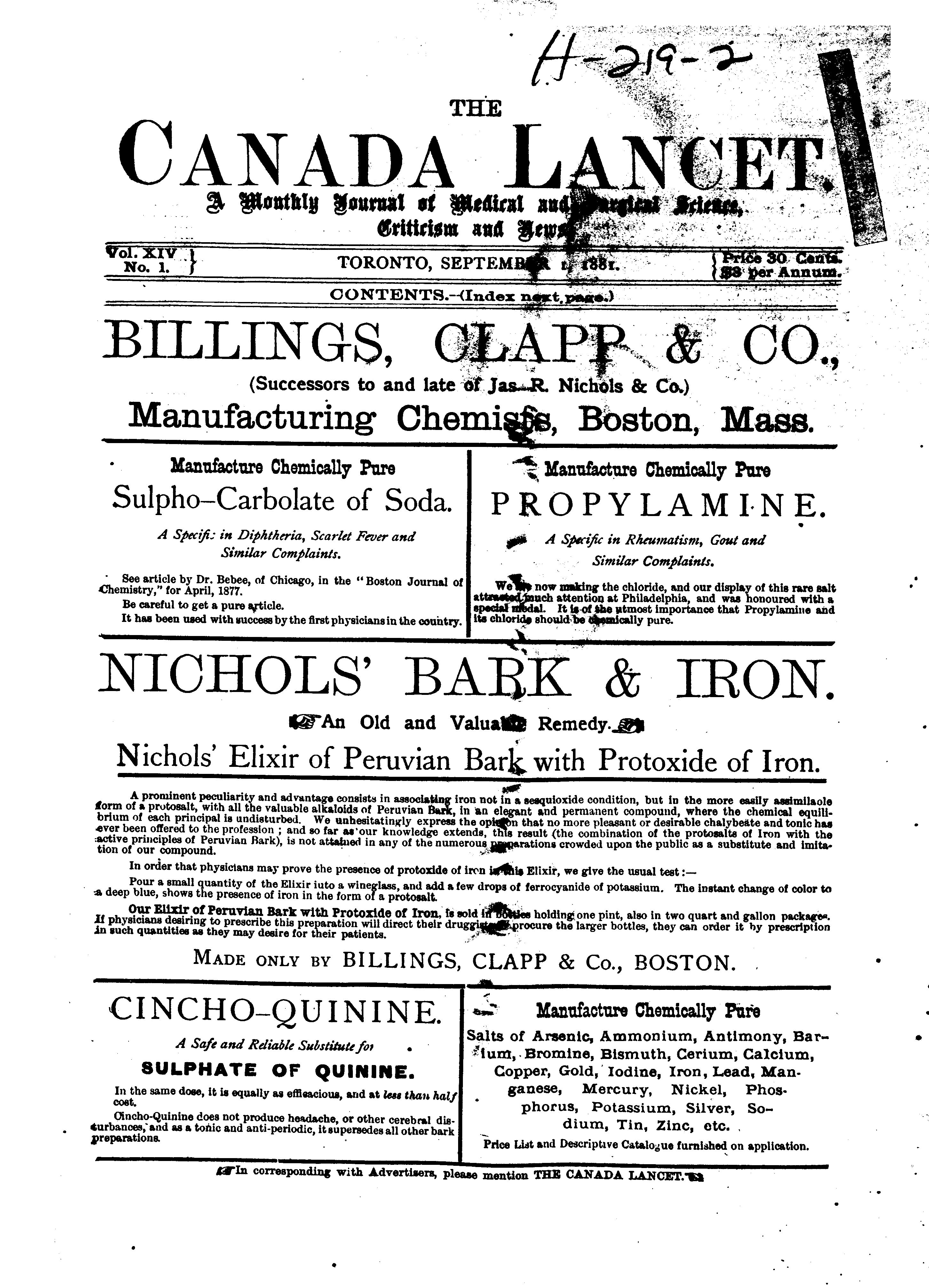 The Canada lancet : [Vol. 14, no. 1 (Sept. 1, 1881)]