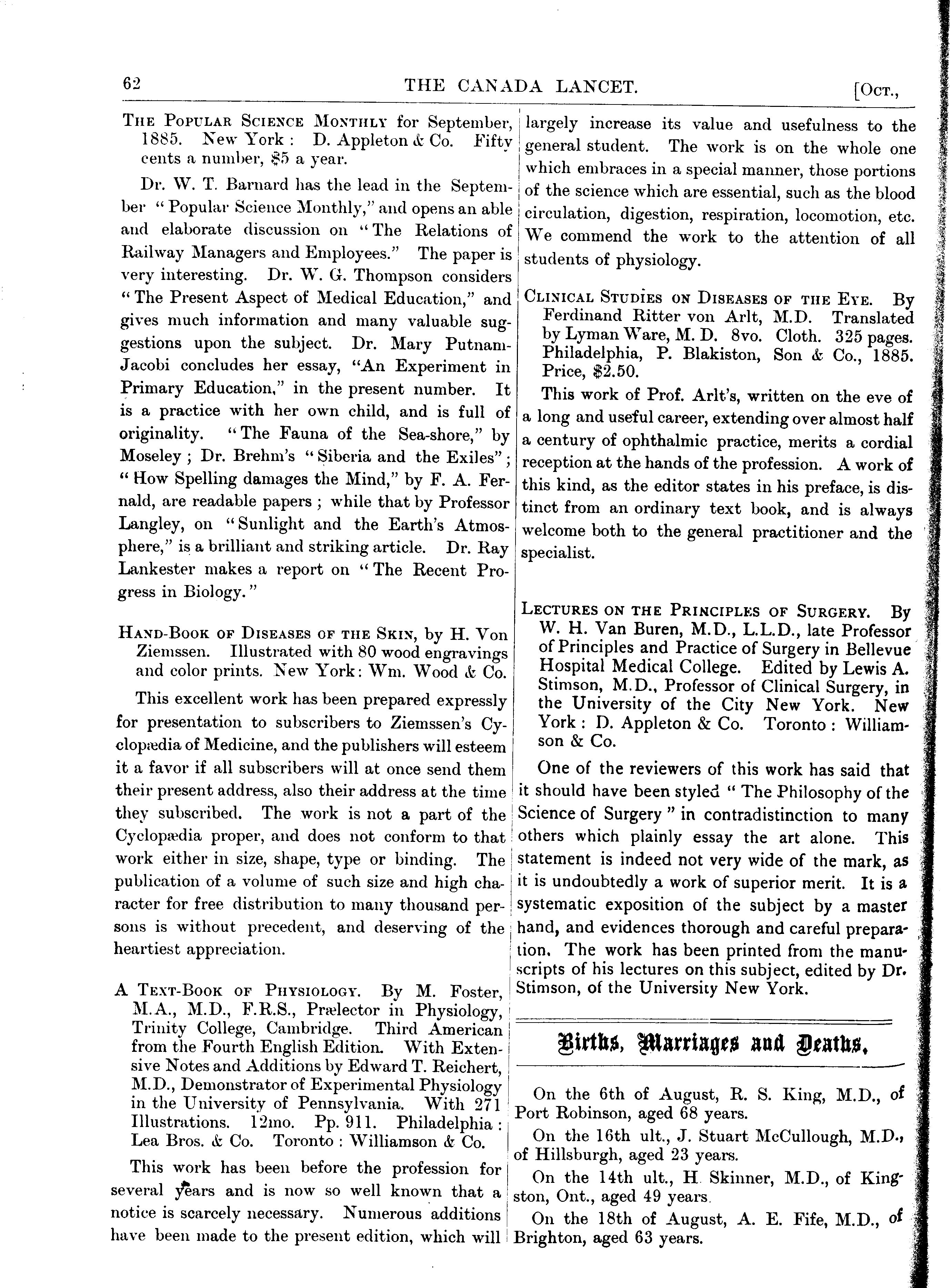- The Canada lancet [Vol. 18, no. 2 (Oct. 1885)]