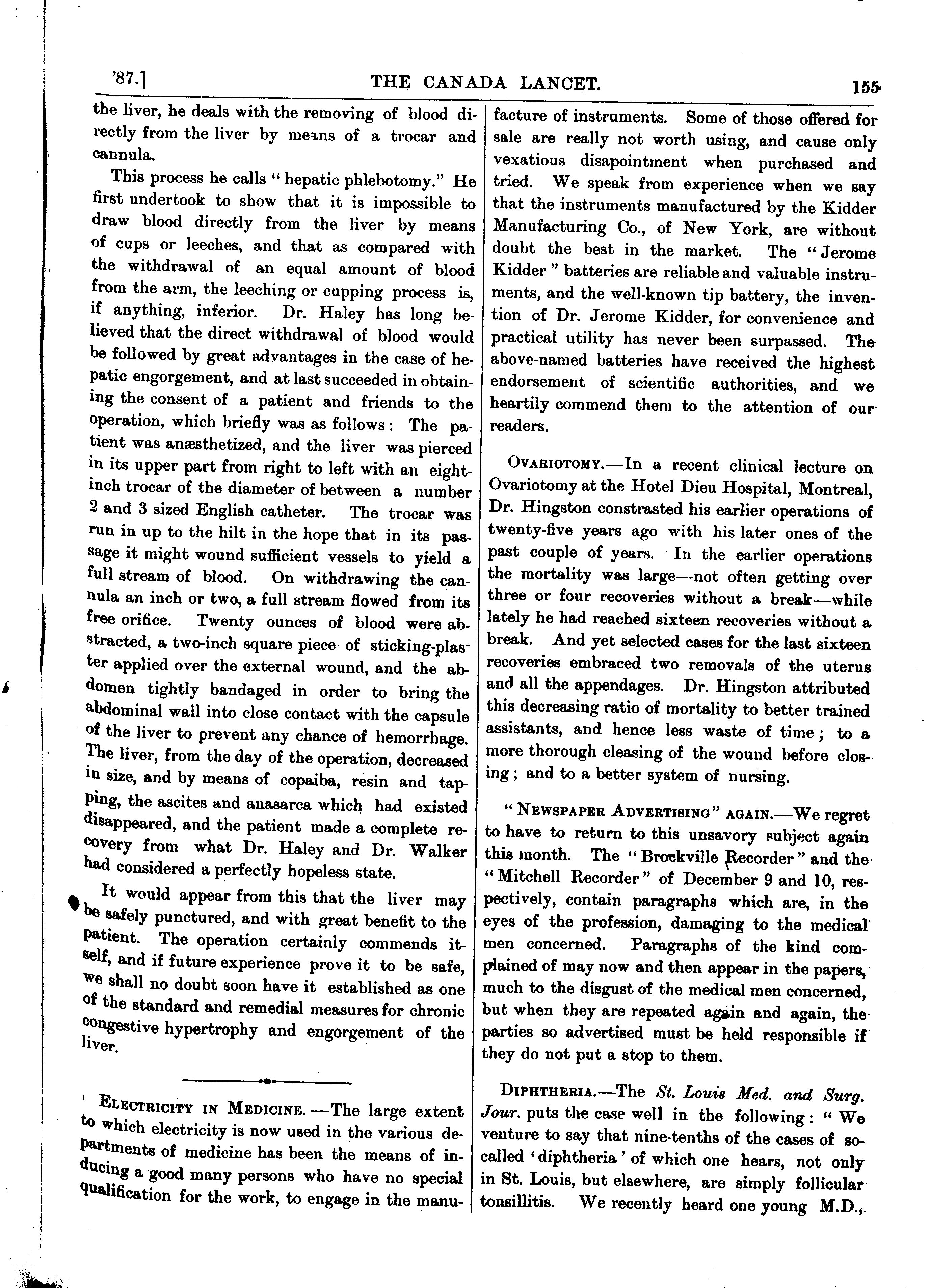 The Canada lancet [Vol. 19, no. 5 (Jan. 1887)]