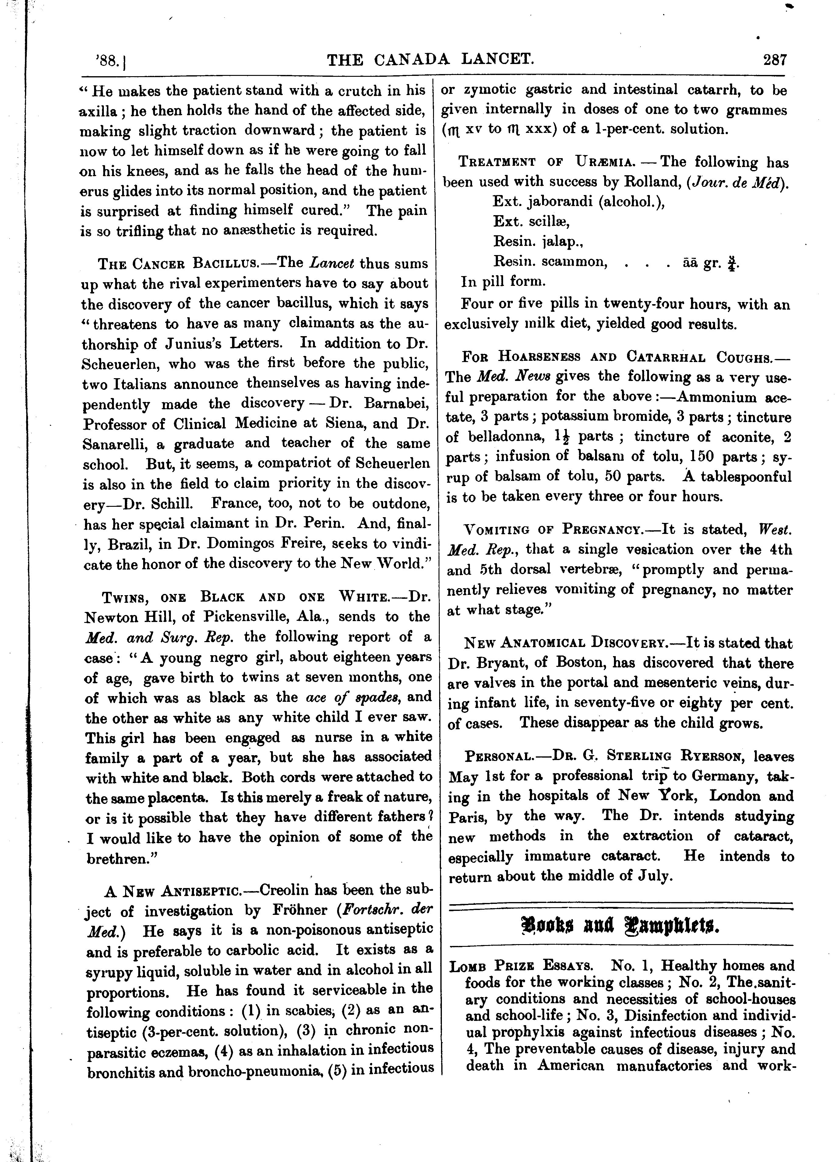 - The Canada lancet [Vol. 20, no. 9 (May 1888)]