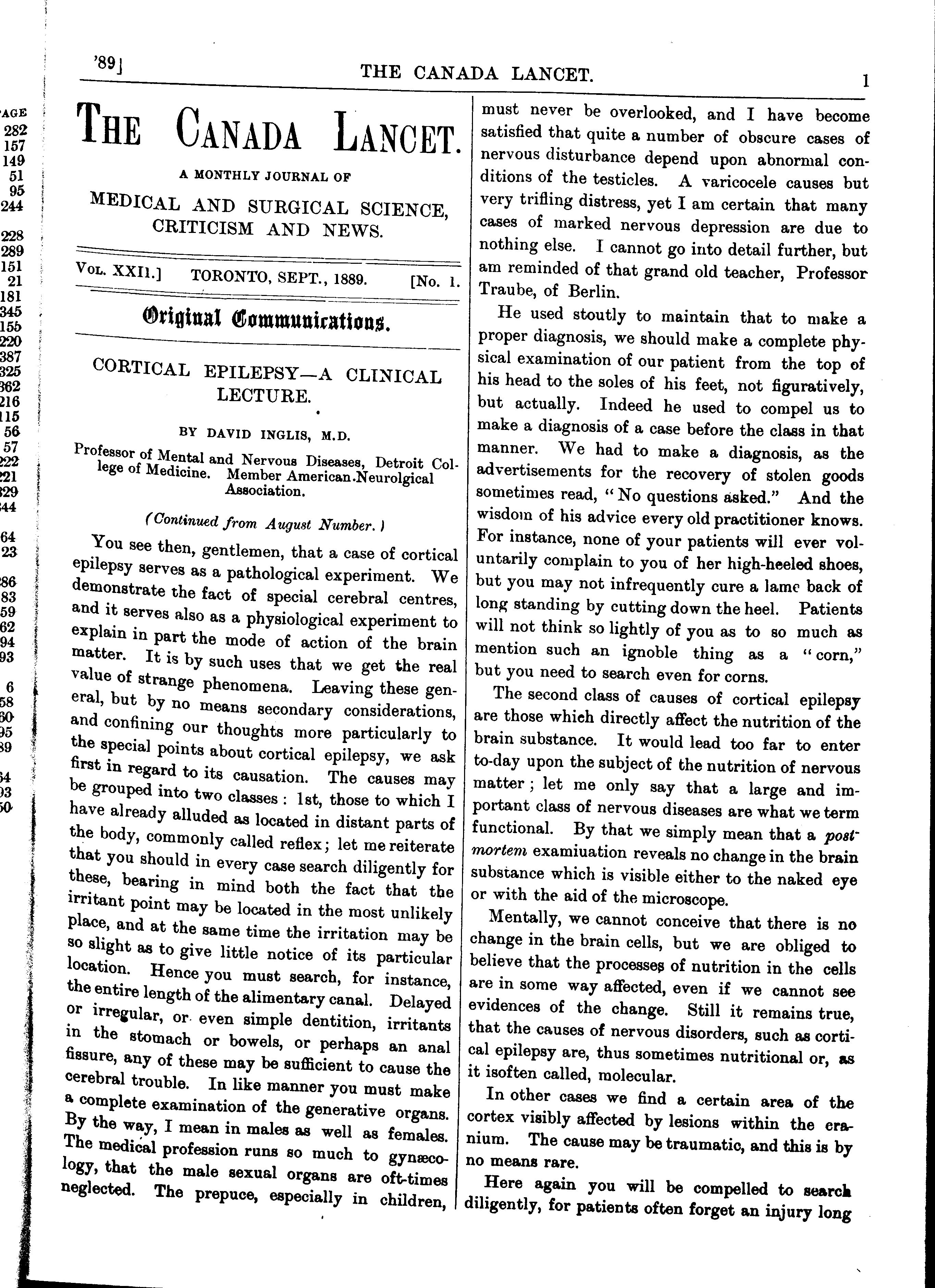 The Canada lancet : [Vol. 22, no. 1 (Sept. 1889)]