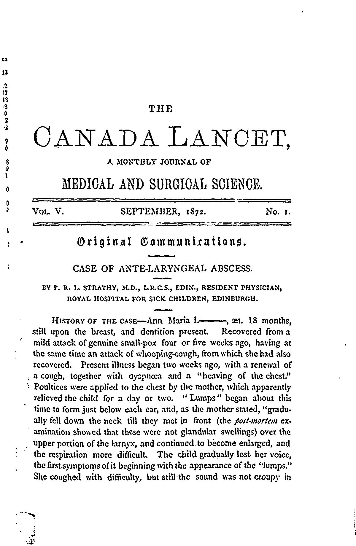 The Canada lancet [Vol. 5, no. 1 (Sept. 1872)]