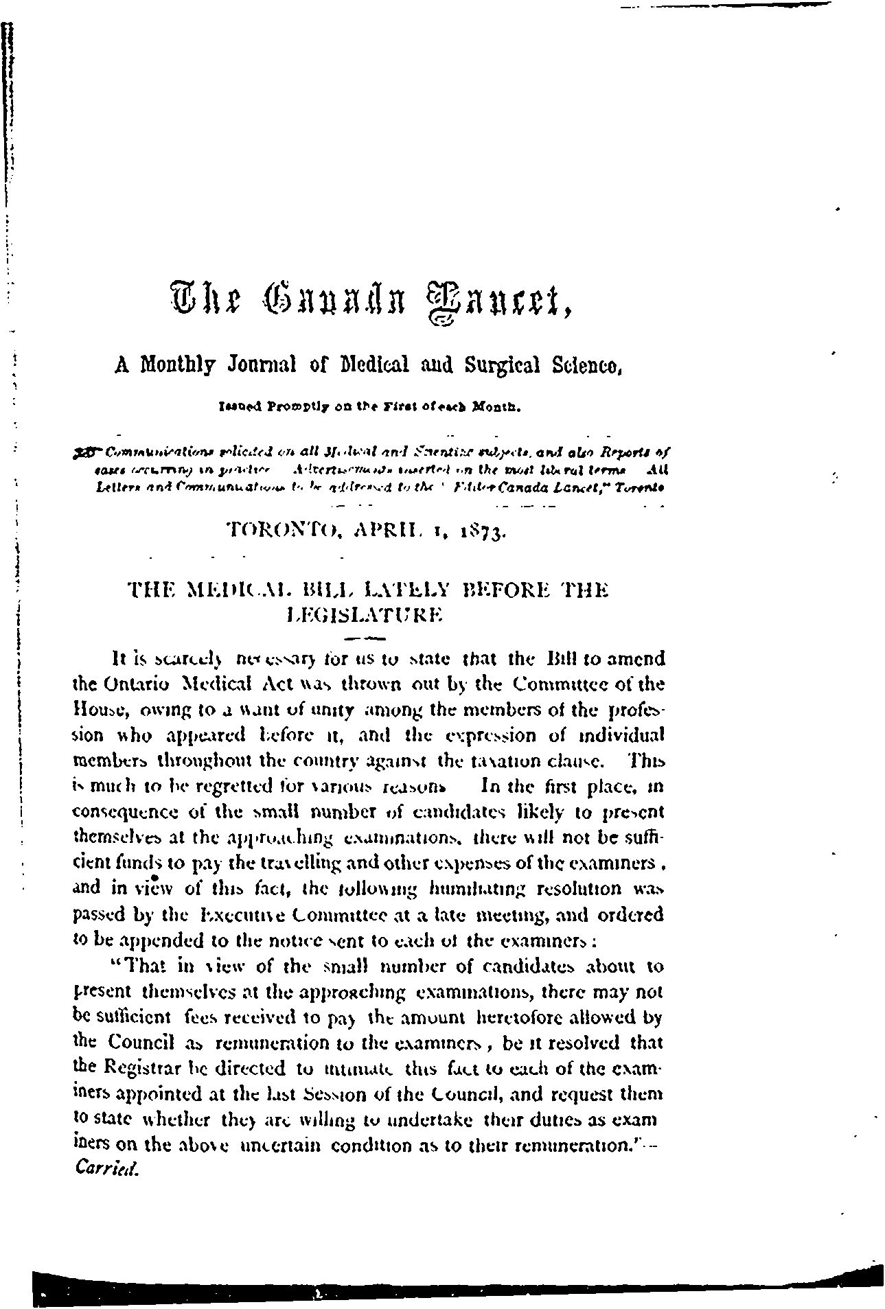- The Canada lancet [Vol. 5, no. 8 (Apr. 1873)]