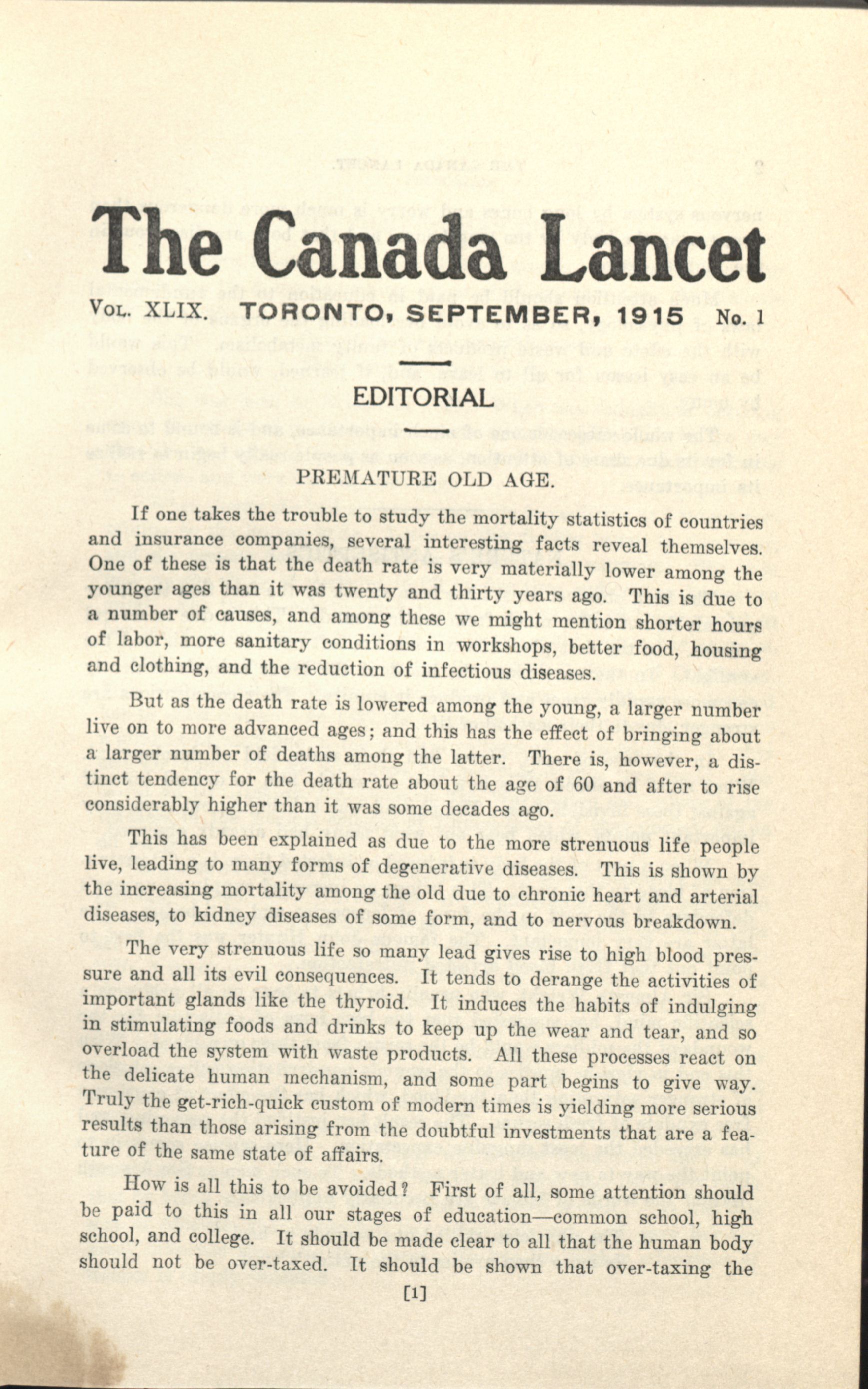 The Canada lancet : Vol. 49, no. 1 (Sept. 1915)