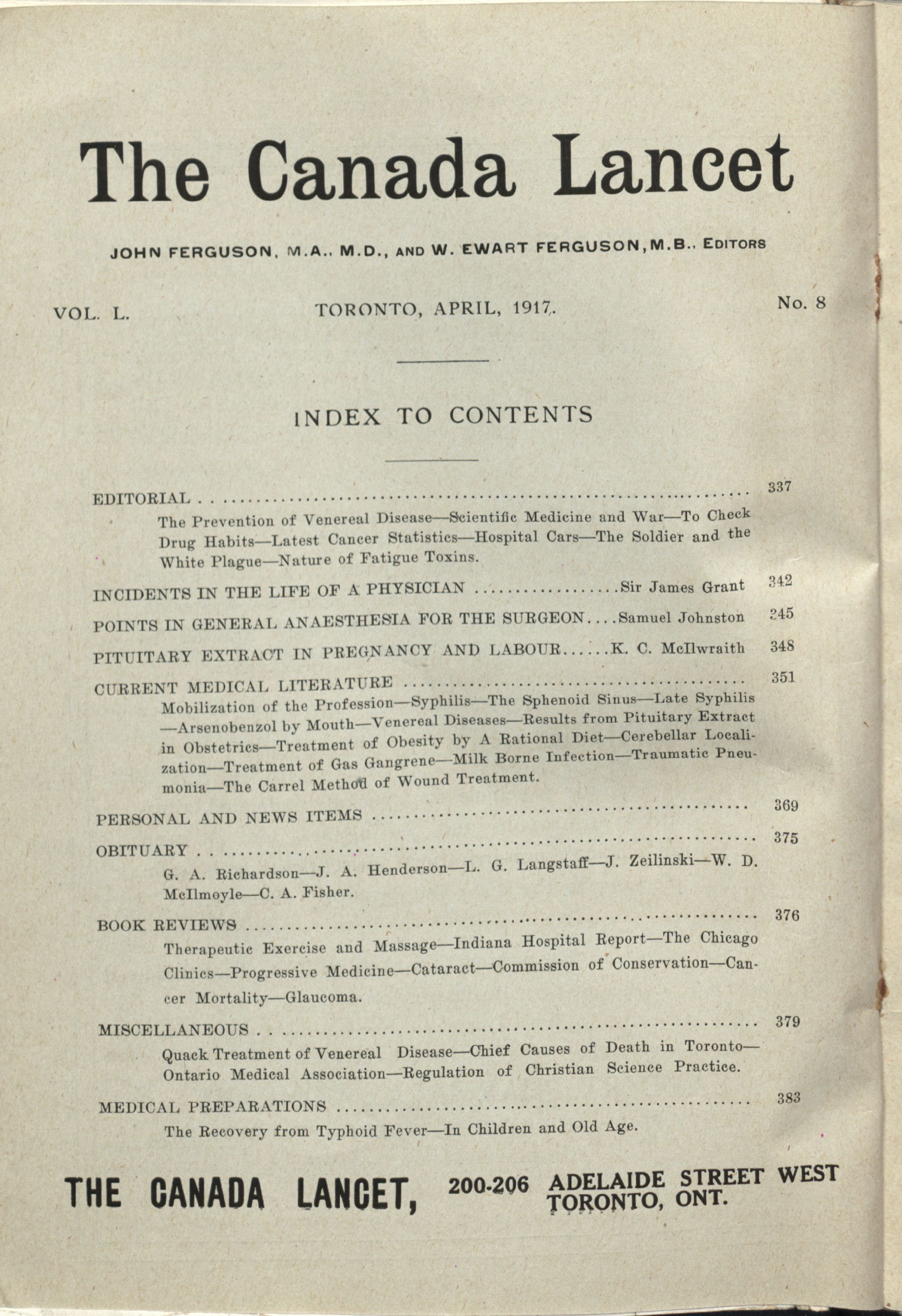 The Canada lancet : Vol. 50, no. 8 (Apr. 1917)
