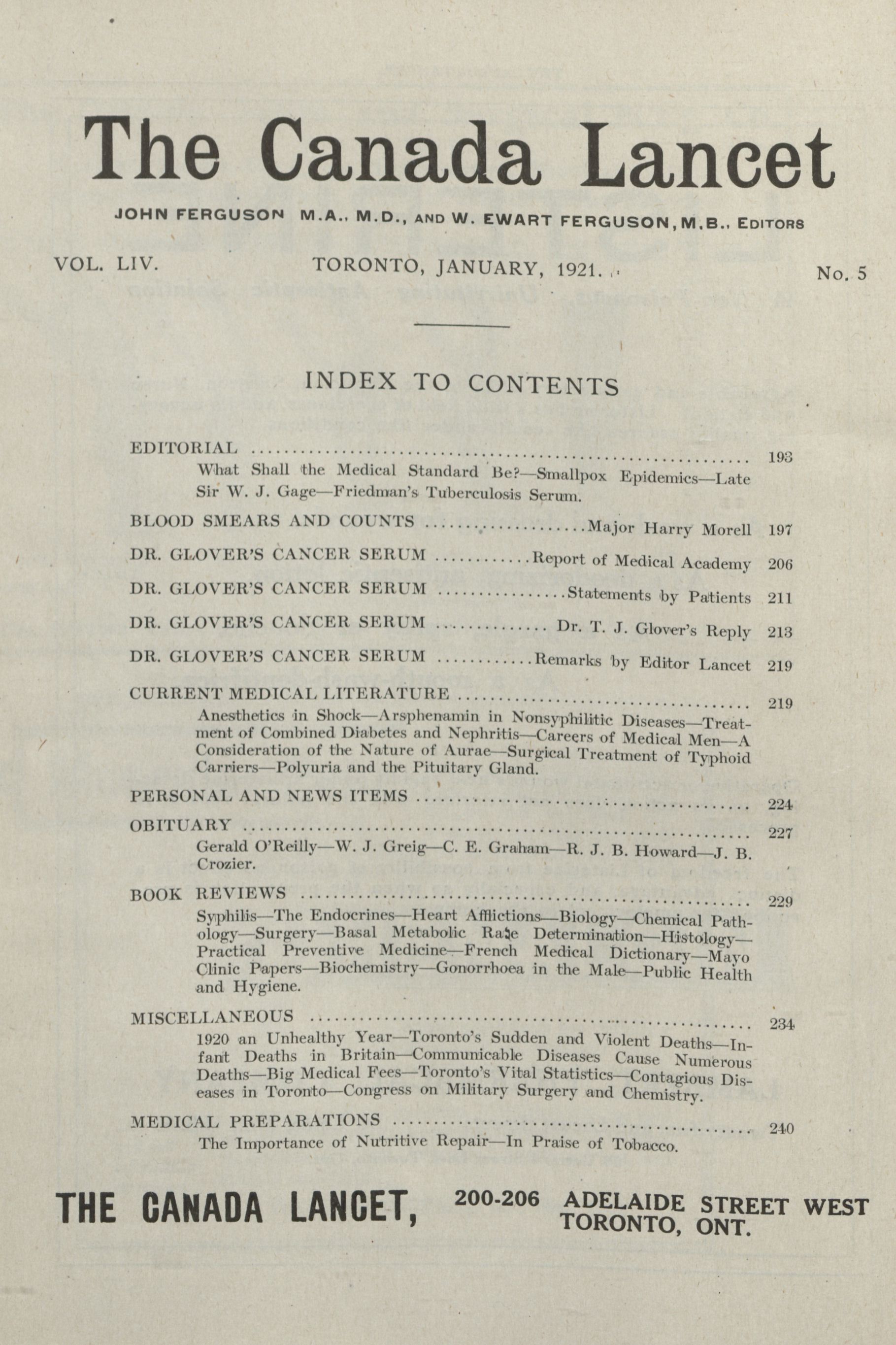 The Canada lancet : Vol. 54, no. 5 (Jan. 1921)