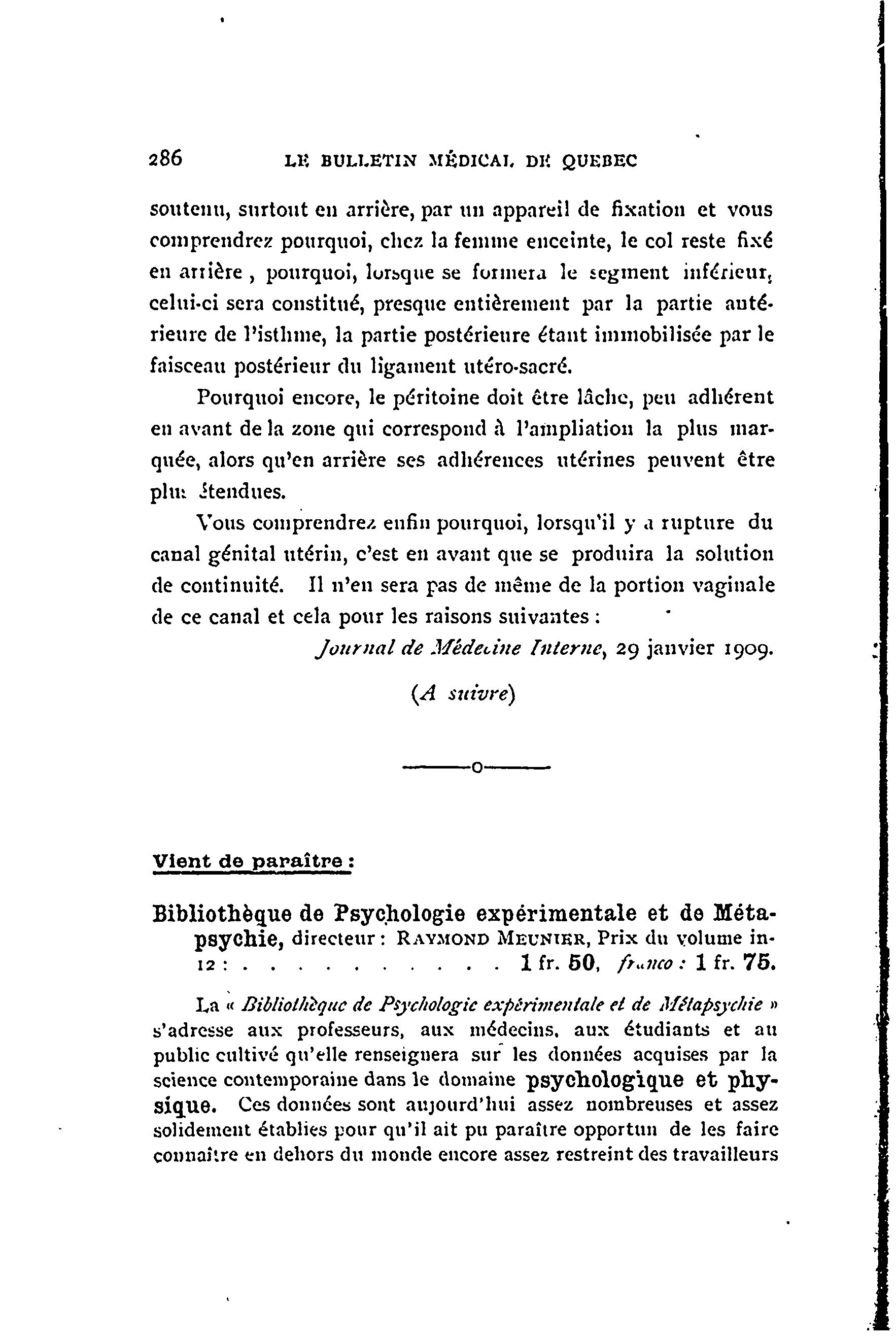 Le bulletin médical de Québec : [10e année, no 6] (févr. 1909)