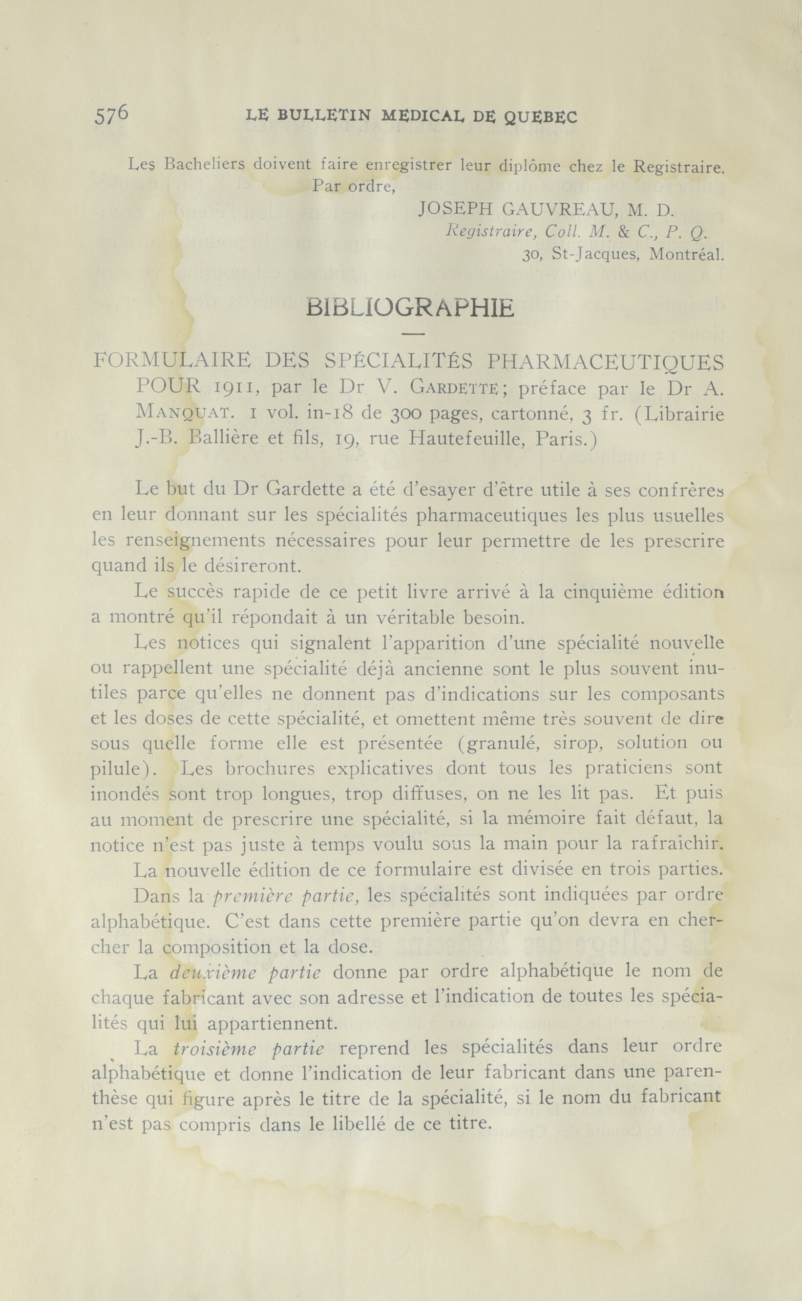 Le bulletin médical de Québec : Le bulletin médical de Québec : août 1911
