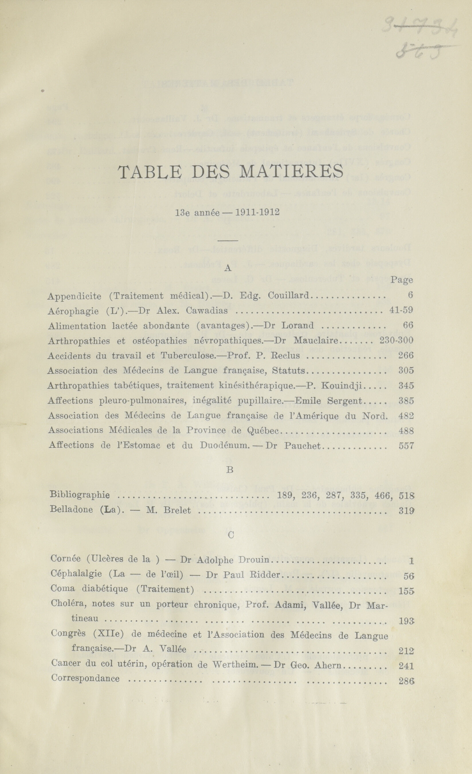 - Le bulletin médical de Québec : 13e année [septembre 1911]