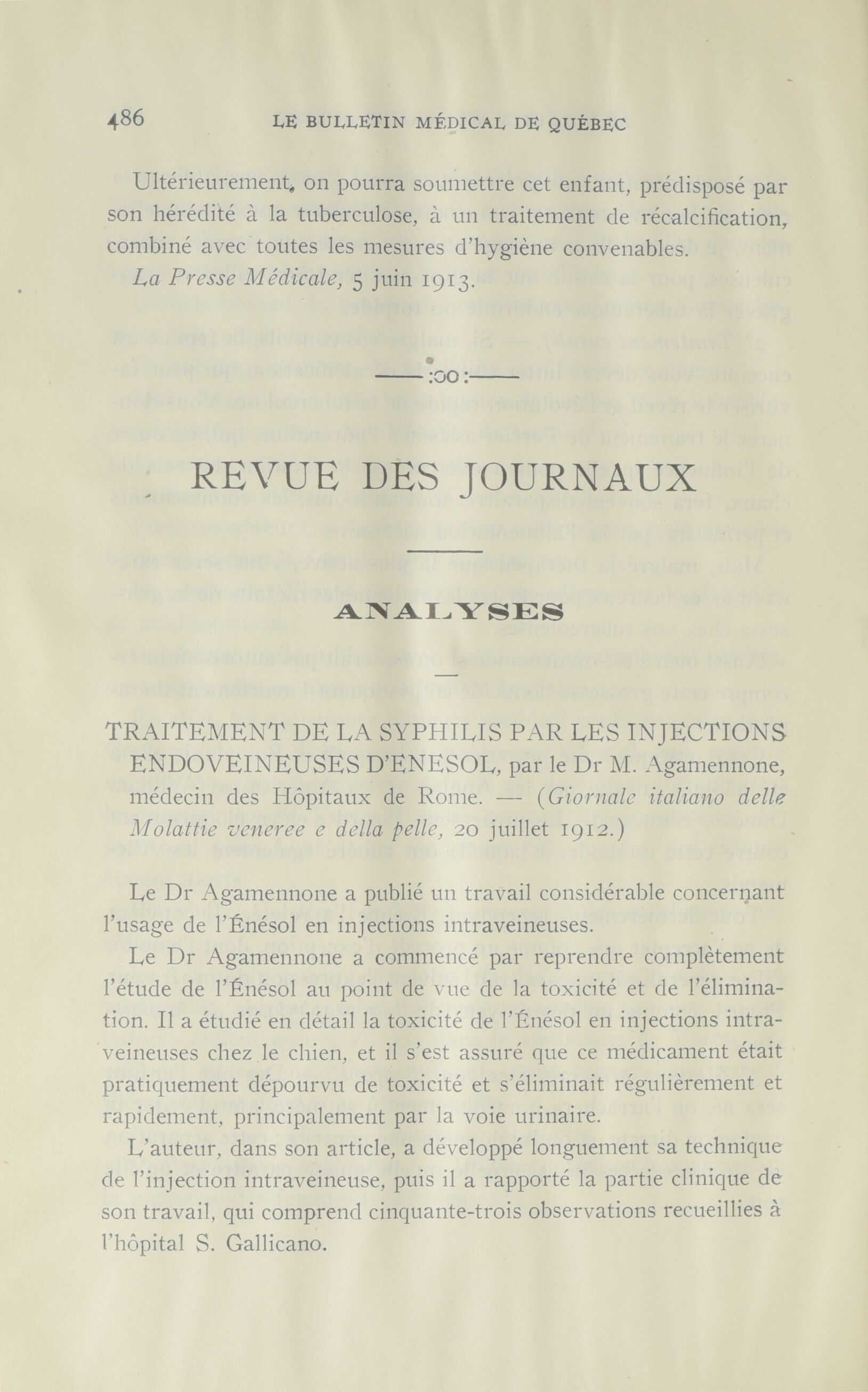 Le bulletin médical de Québec : Le bulletin médical de Québec : [juillet 1913]
