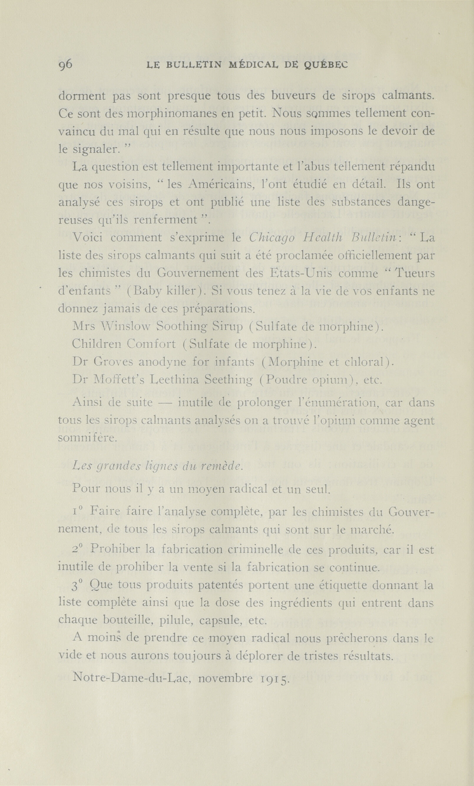 Le bulletin médical de Québec : Le bulletin médical de Québec : [novembre 1915]