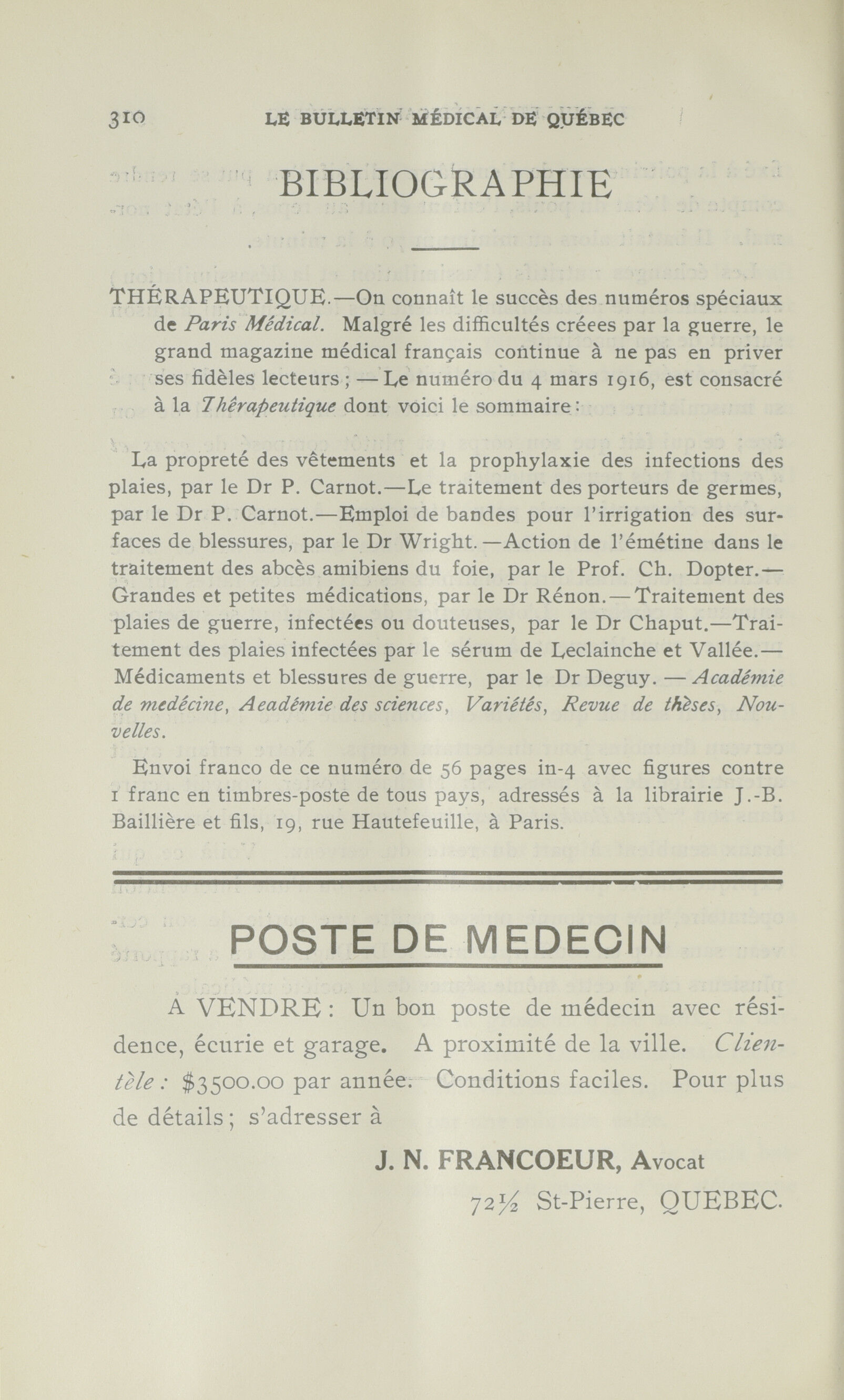 Le bulletin médical de Québec : Le bulletin médical de Québec : [avril 1916]