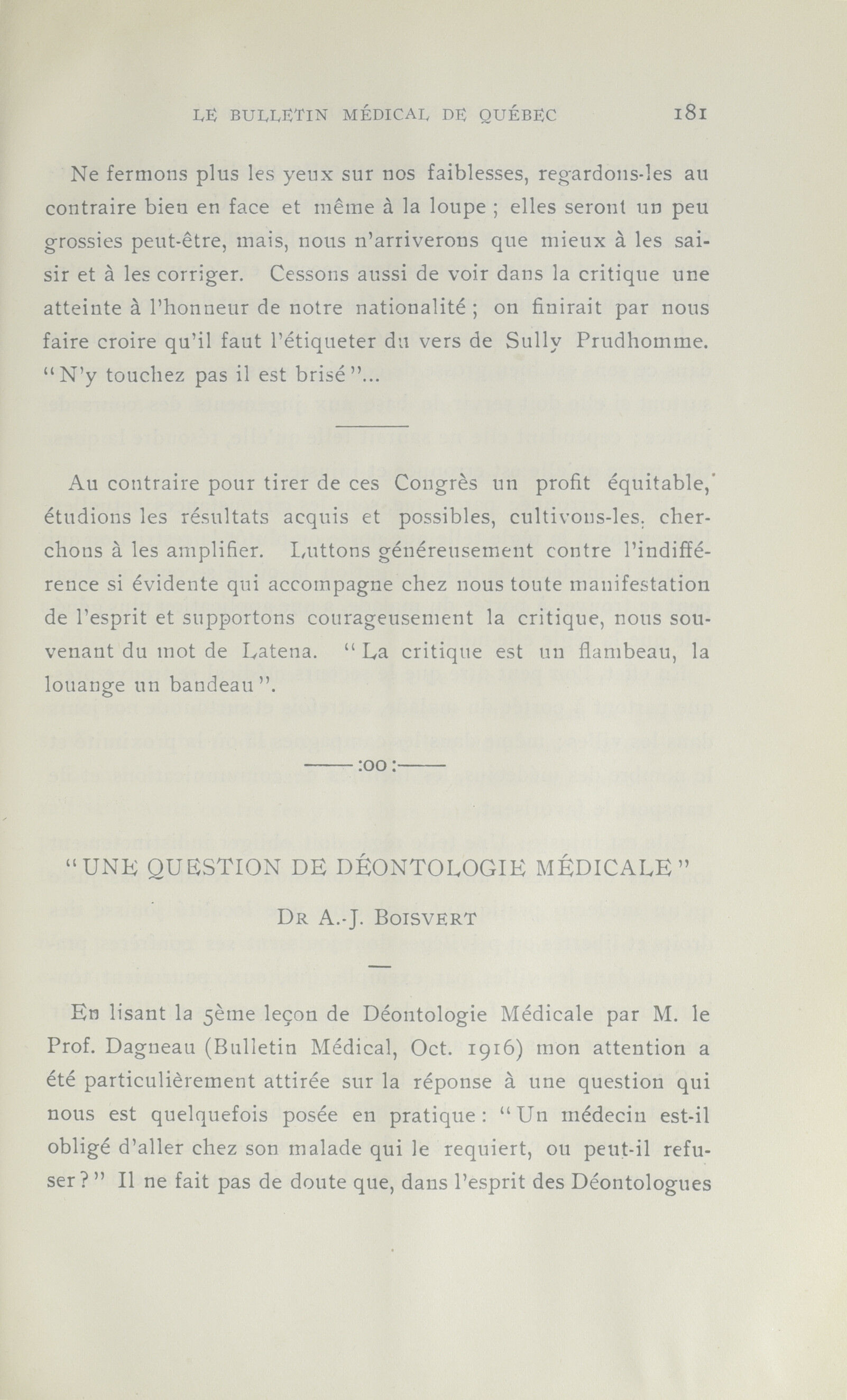 Le bulletin médical de Québec : Le bulletin médical de Québec : [décembre 1916]
