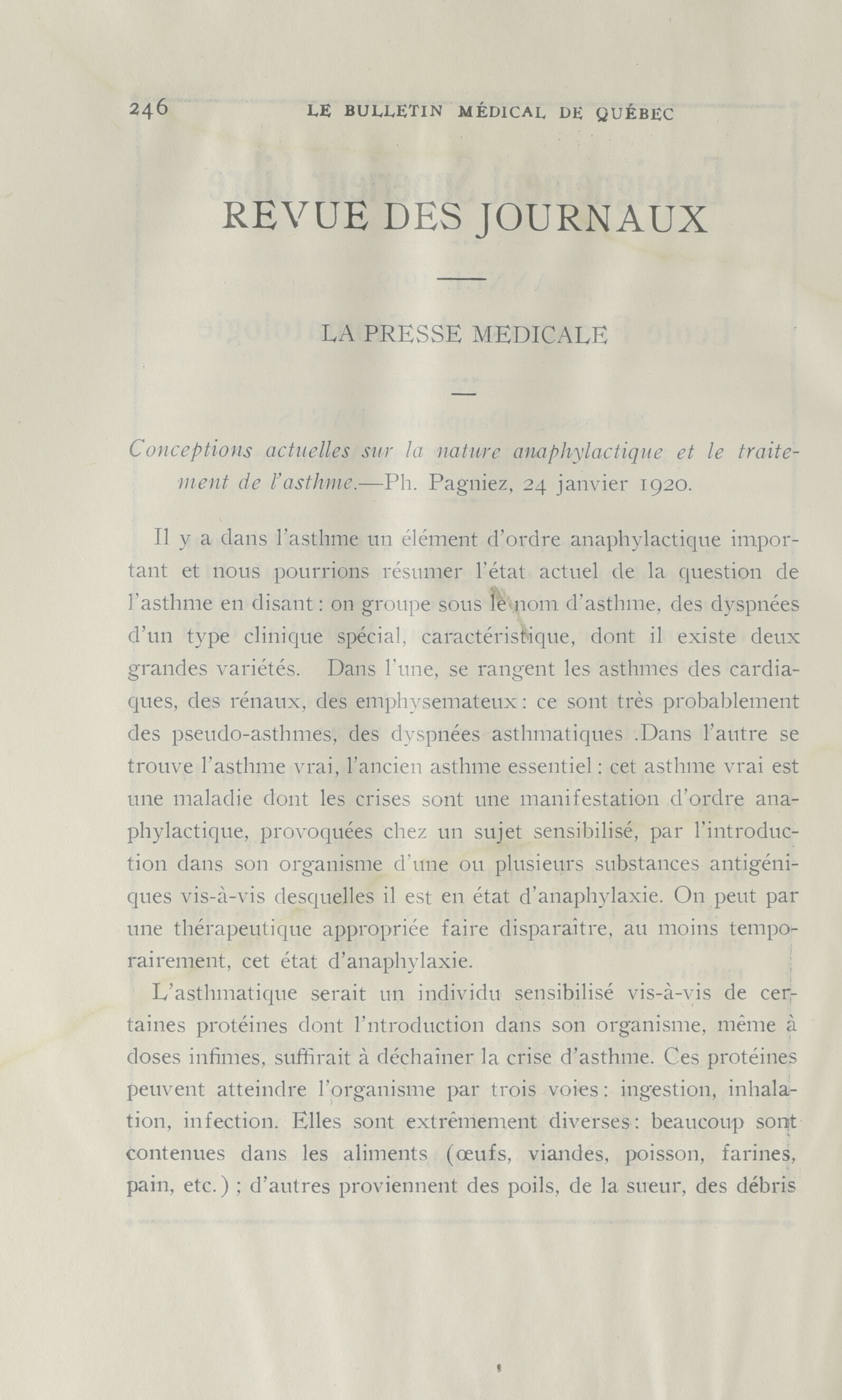 Le bulletin médical de Québec : Le bulletin médical de Québec : [avril 1920]