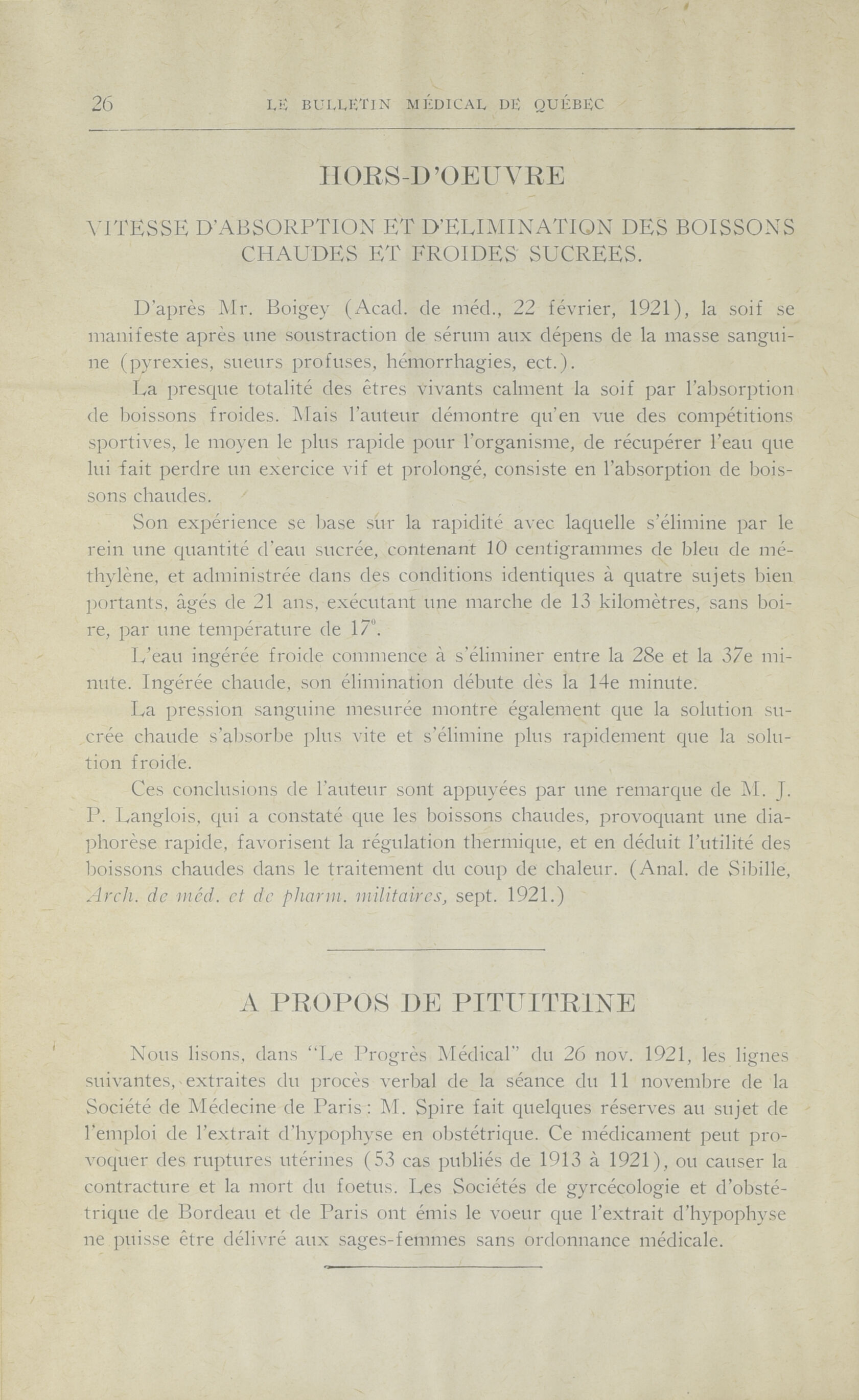 Bulletin médical de Québec : 23e année, No 1 (janvier 1922)