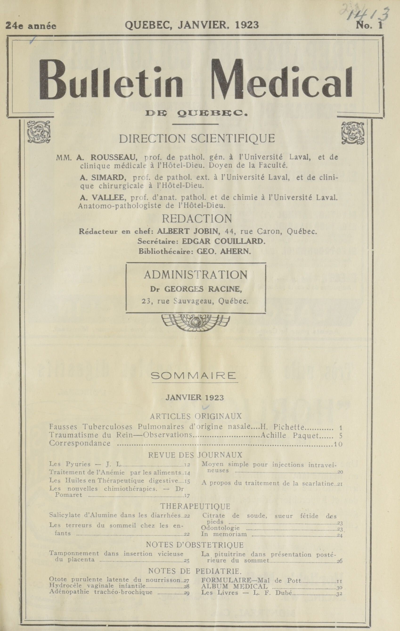 [Québec] : [Société Médicale de Québec], [1923]; 38 images, 37 avec recherche en texte intégral