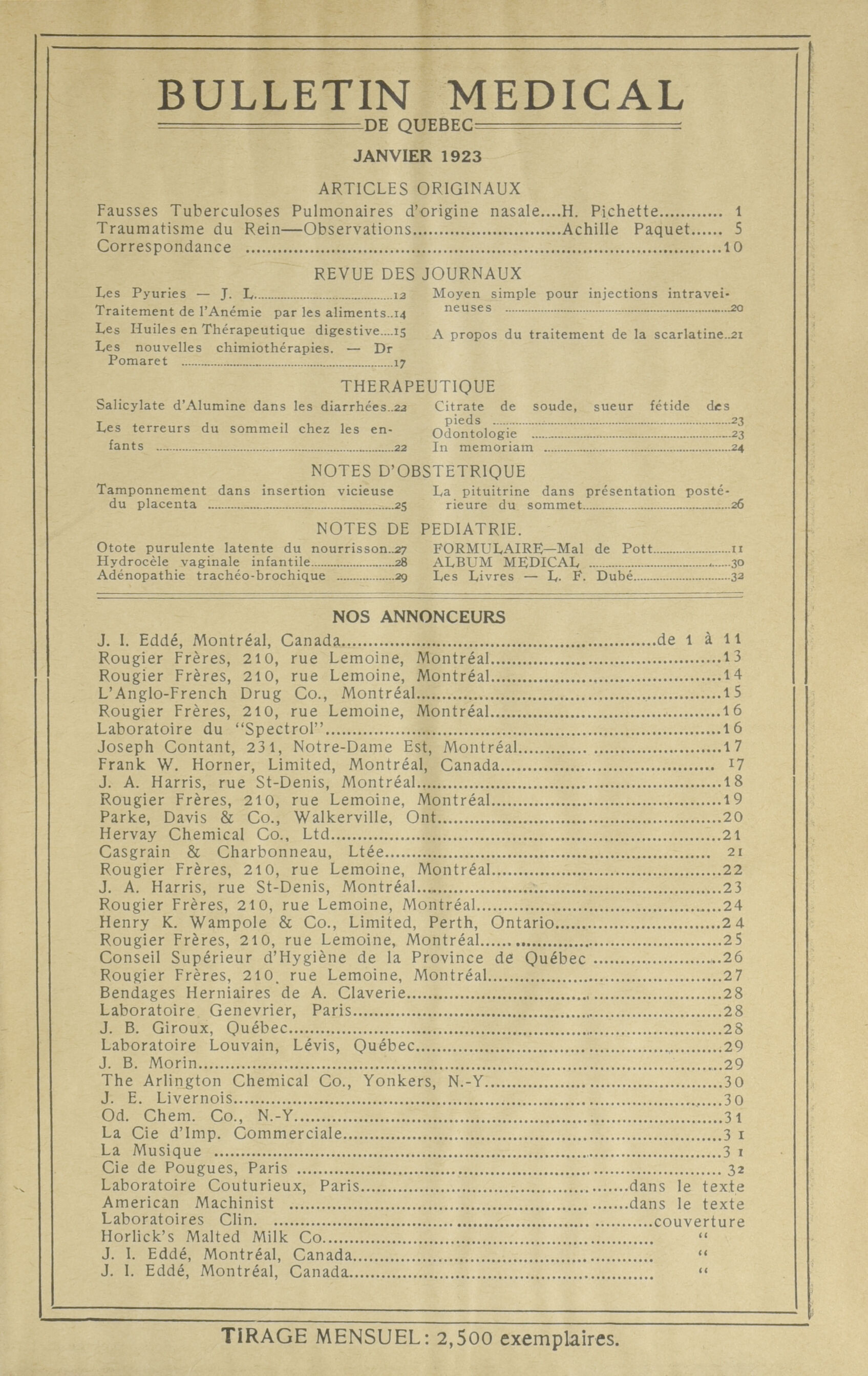 [Québec] : [Société Médicale de Québec], [1923]; 38 images, 37 avec recherche en texte intégral