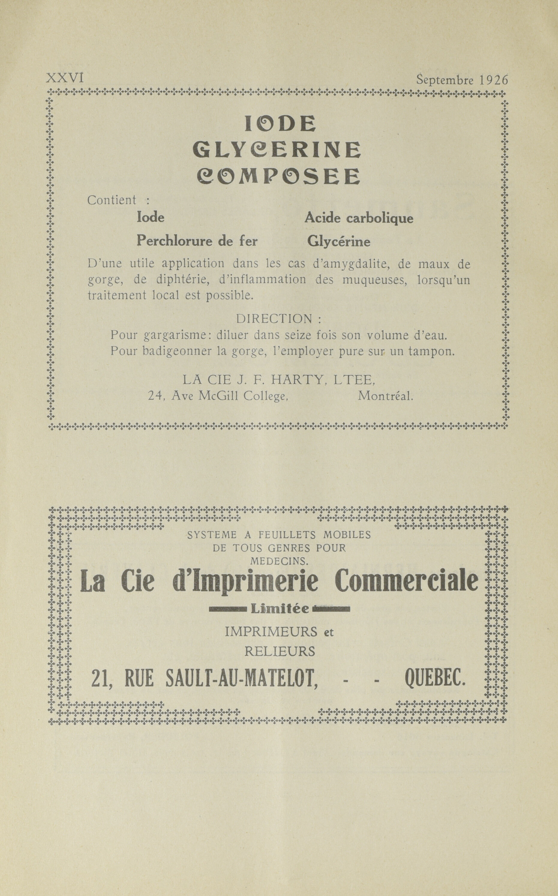 Bulletin médical de Québec : 27e année, No 9 (septembre 1926)