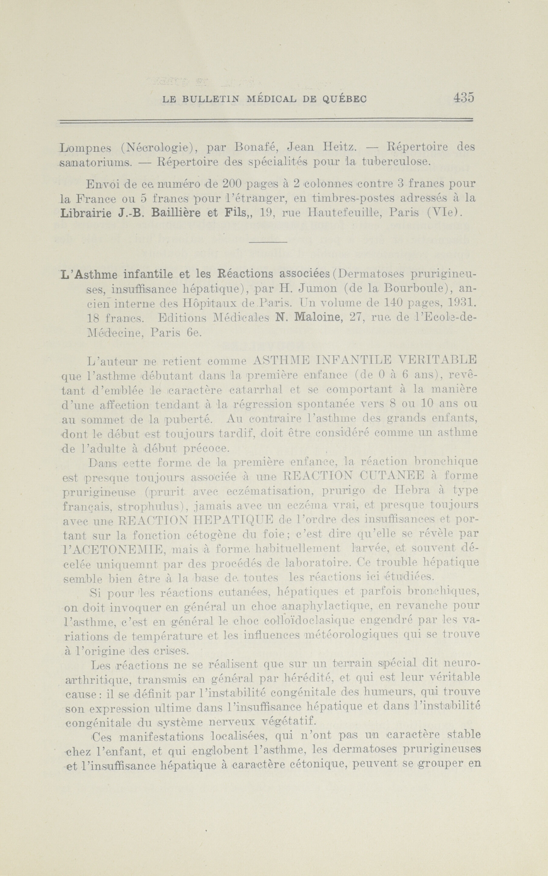- Le bulletin médical de Québec : 31e année, No 12 (décembre 1930)