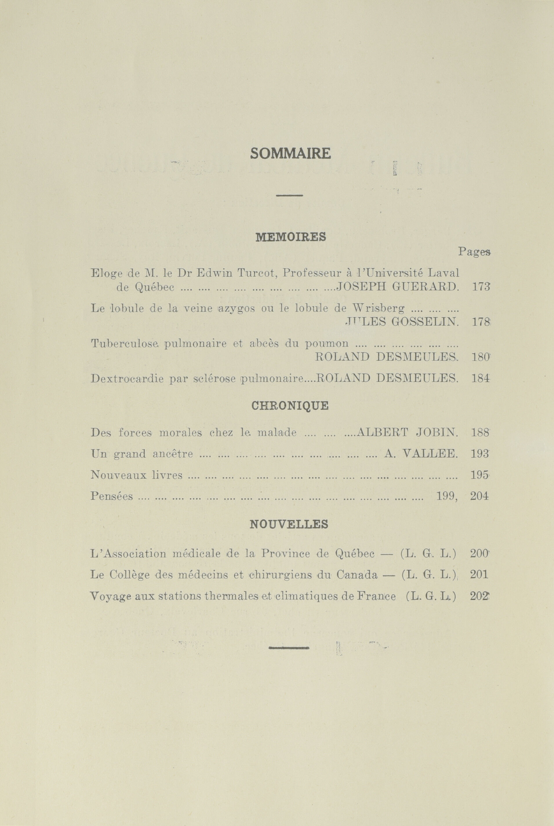 Québec : [Société Médicale de Québec], [1930]; 64 images, 62 avec recherche en texte intégral