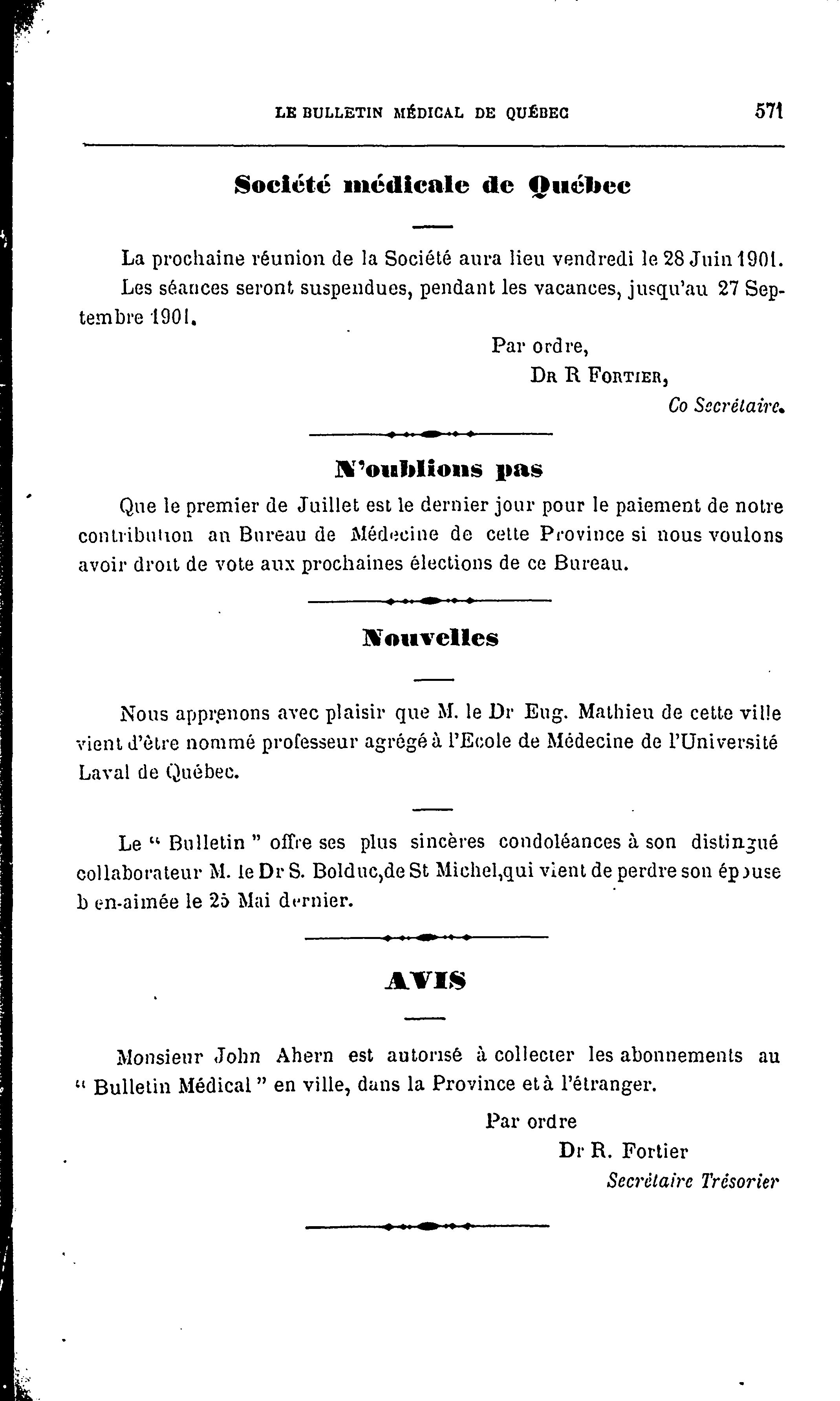 - Le bulletin médical de Québec : [2e année, no 10 (juin 1901)]