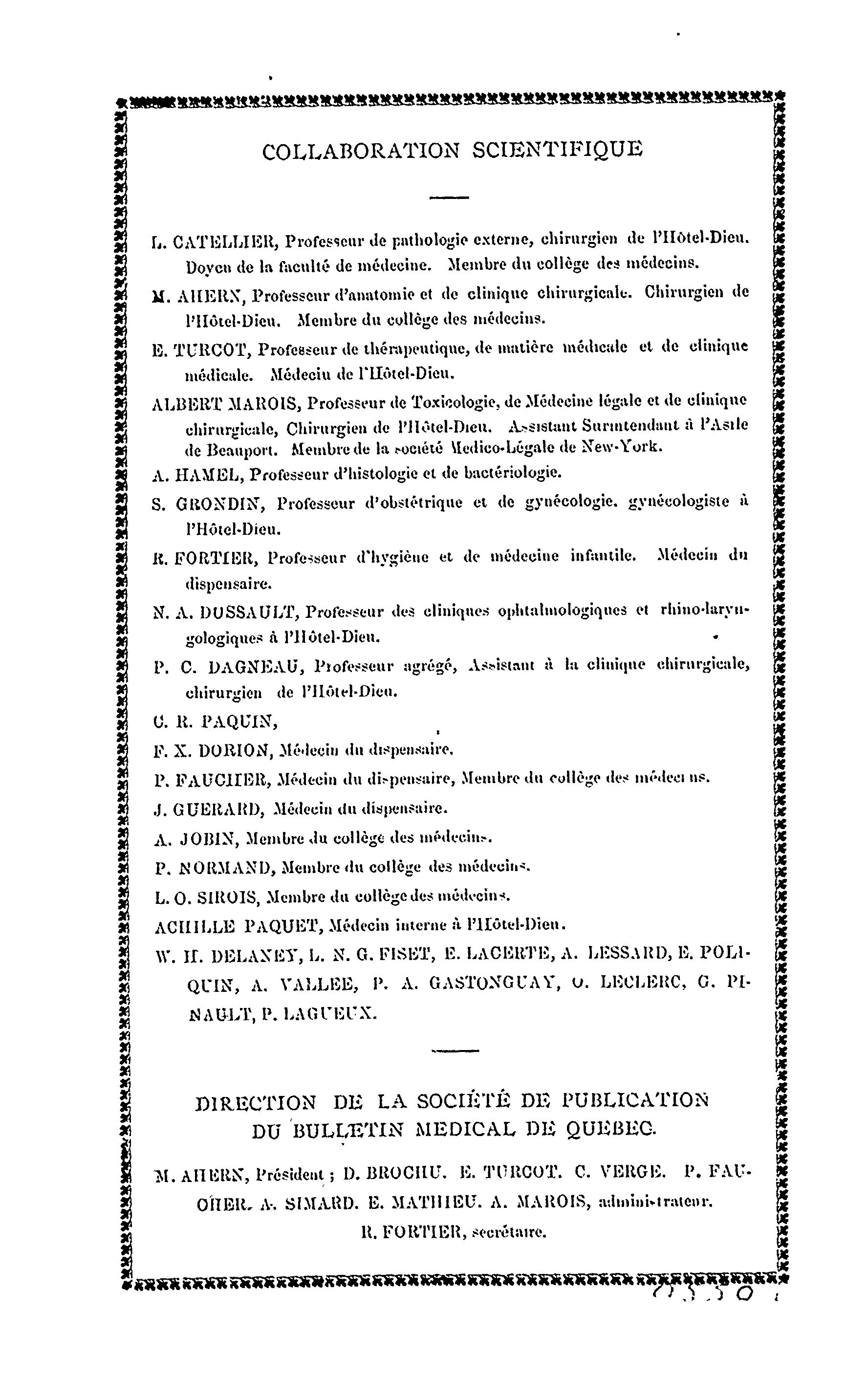 - Le bulletin médical de Québec : 7e [i.e. 8e] année, no 1 (sept. 1906)