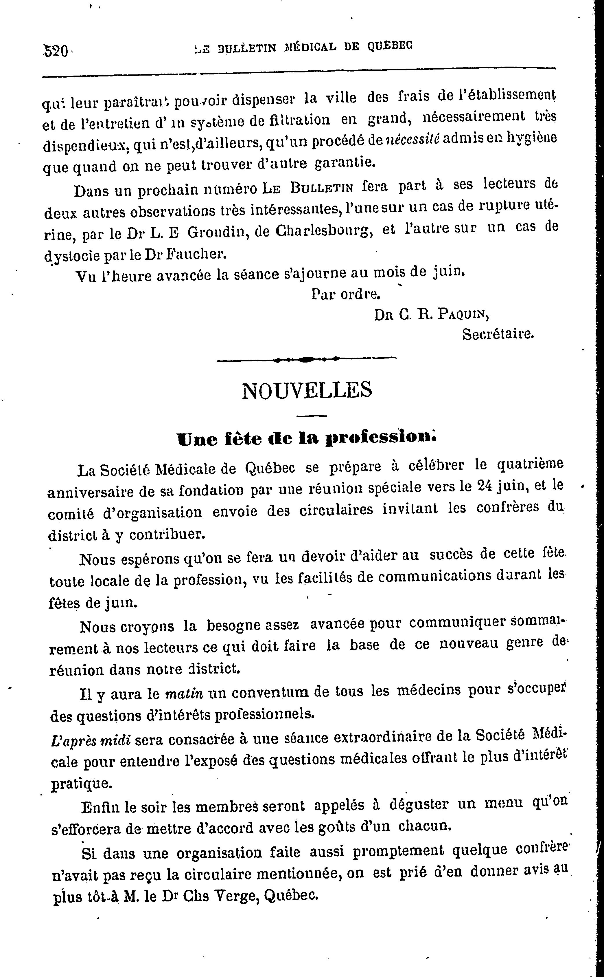 Le bulletin médical de Québec : Le bulletin médical de Québec : [1ère année, no 9 (mai 1900)]