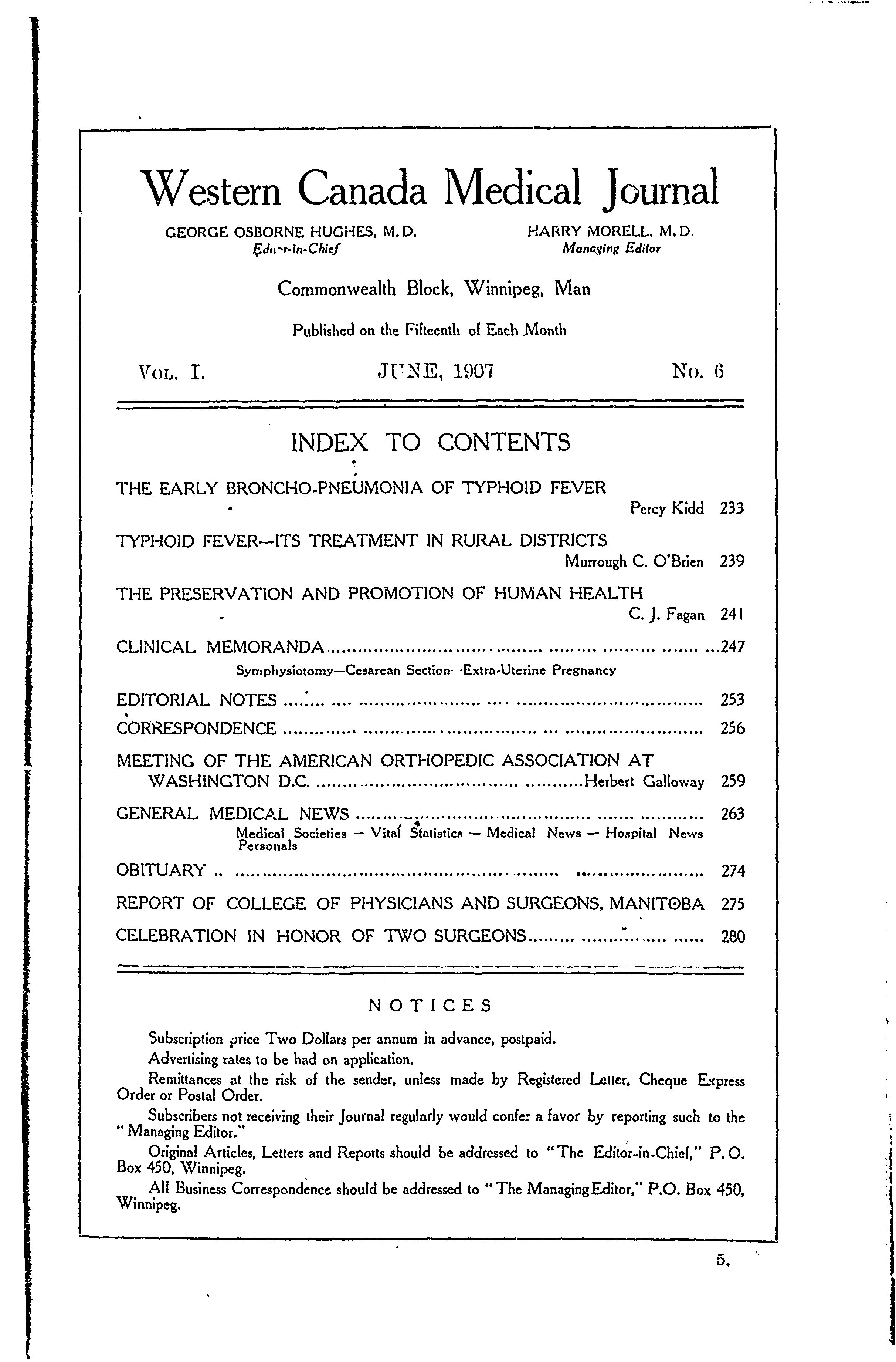Western Canada medical journal [Vol. 1, no. 6 (June 1907)]